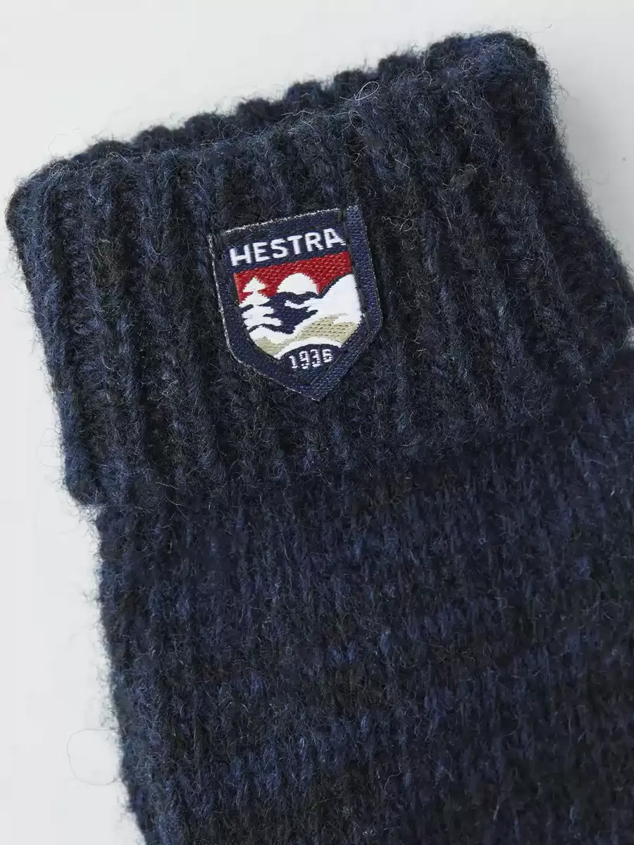 En blød og behagelig vante i en uld/cashmere-blanding til de allermindste eventyrere. Også ideel som for under en basishandske for ekstra varme på kolde dage. Foret har en ribbet manchet og et lille Hestra-logo på bagsiden af ​​hånden. Bemærk: Størrelse 0 har ikke en tommelfinger.”
