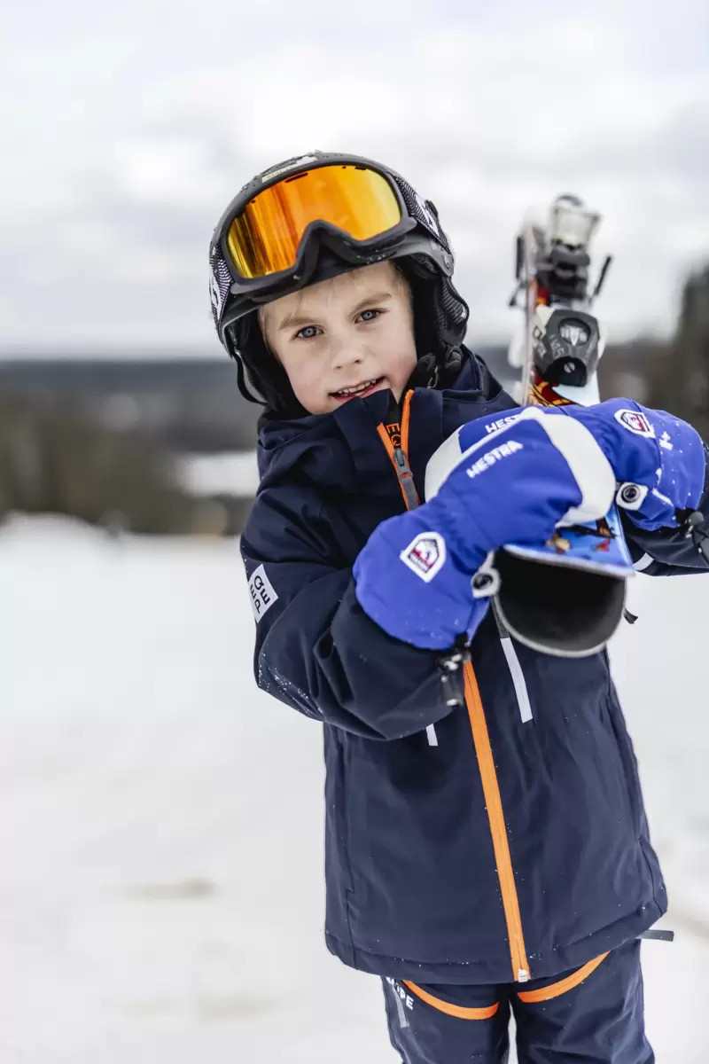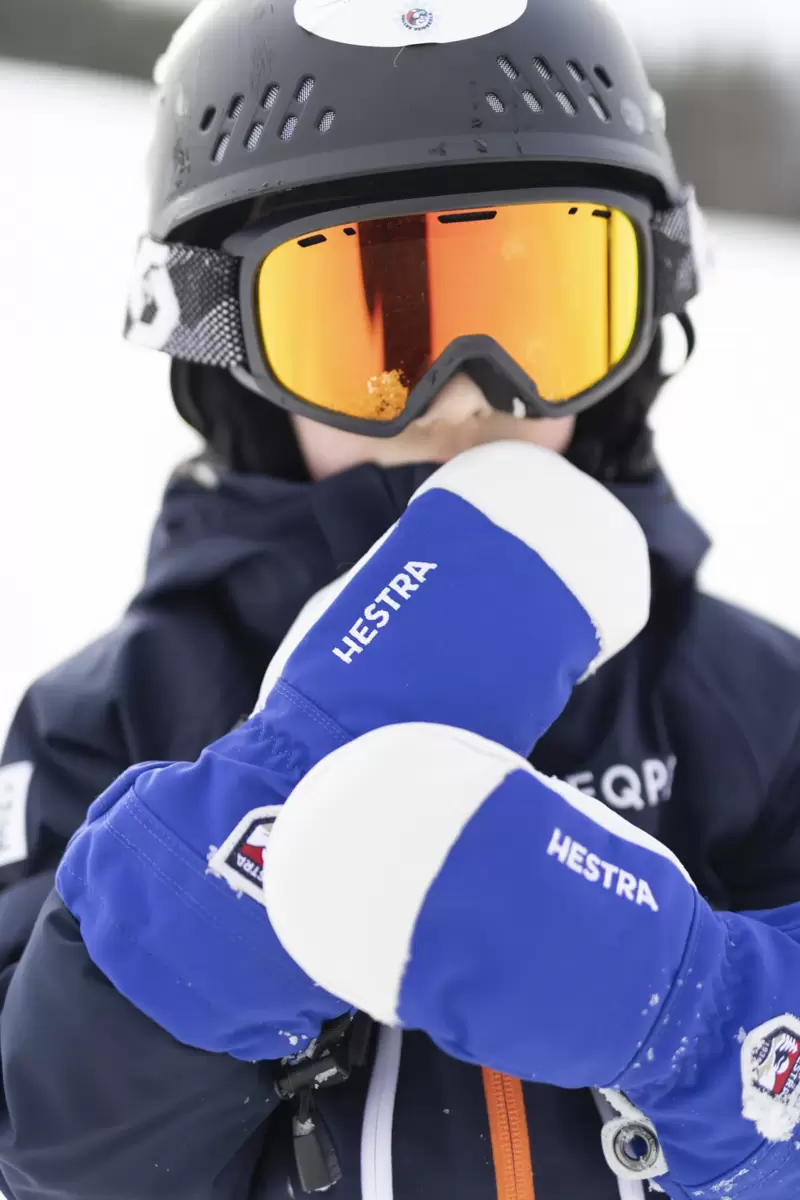 Hestras Heli Ski-handske blev oprindeligt skabt til canadiske skipiders, der havde brug for en pålidelig, varm skihandske til lange dage med sne og kulde. Hvad kunne være bedre for skiglade juniorer, der skal ud i skoven, på pisterne eller i parken, så snart de får et ekstra minut? Ligesom voksenversionen er børnevanten syet i slidstærkt gedeskind og vejrbestandigt 3-lags polyamid. Fleeceforet er aftageligt og har varmende G-loft syntetisk isolering. En håndledsrem reducerer risikoen for at miste en handske, når du tager den af på en lift for at bruge en telefon eller justere skibriller. Der er også et øje til at hænge vanten op. Som vante giver den lidt mere varme til frosne fingre, men den fås også i tre- og femfingerversioner. En slidstærk, varmende vinterledsager i alle slags skiterræn hele sæsonen lang.