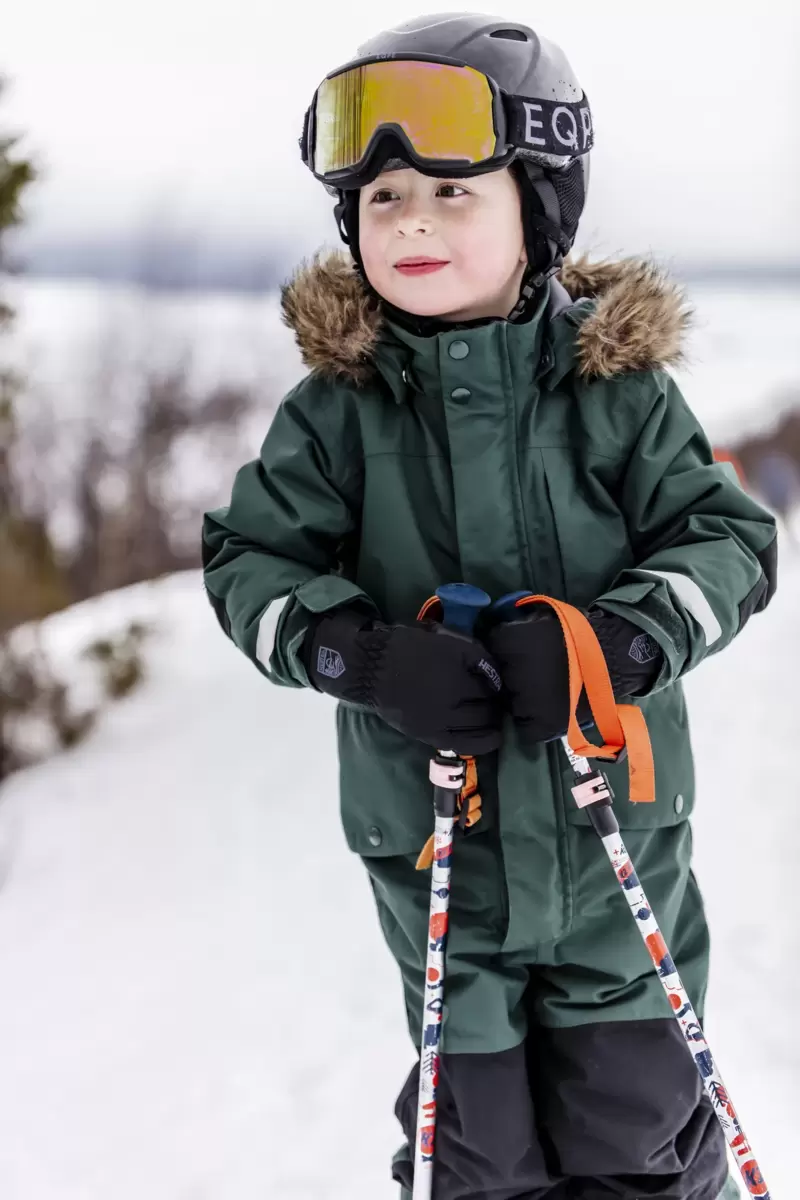 Kold sne, våd sne og pludselig tæt kontakt med en vandpyt – vinterhandsker til børn skal kunne modstå meget, og Ferox Primaloft har en vandtæt og åndbar CZone-membran, der holder hænderne varme og tørre på alle deres eventyr. Baghånden er lavet af smidig polyester, mens håndfladen og fingrene er i PU-belagt syntetisk stof. Et blødt polyesterfleecefor og Primaloft Gold syntetisk isolering isolerer mod kulde. En neoprenmanchet med velcrojustering giver en behagelig pasform omkring håndleddet. En behagelig, smidig børnehandske, der altid er klar til leg i sneen og udendørs eventyr. Fås også som vante.