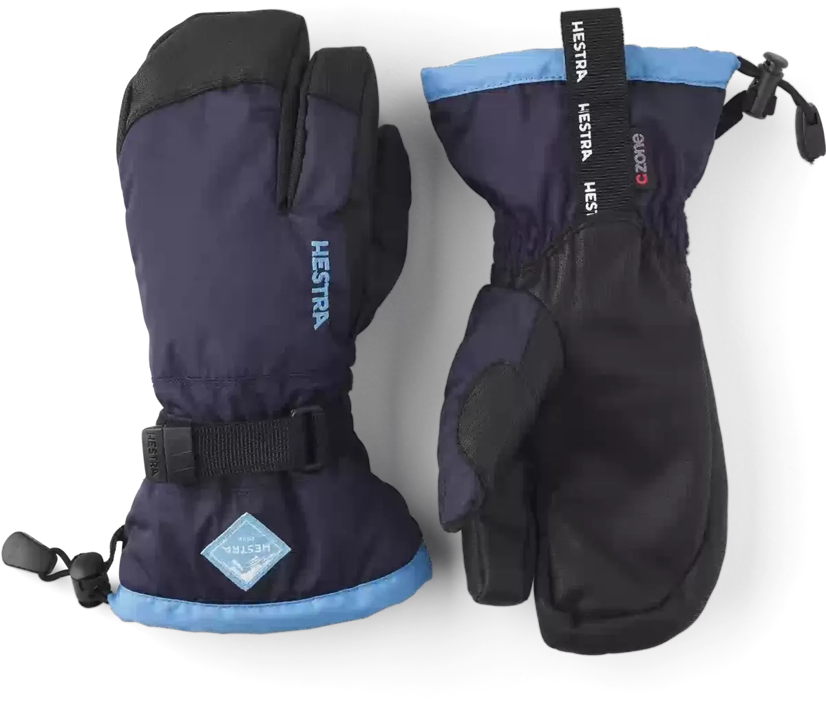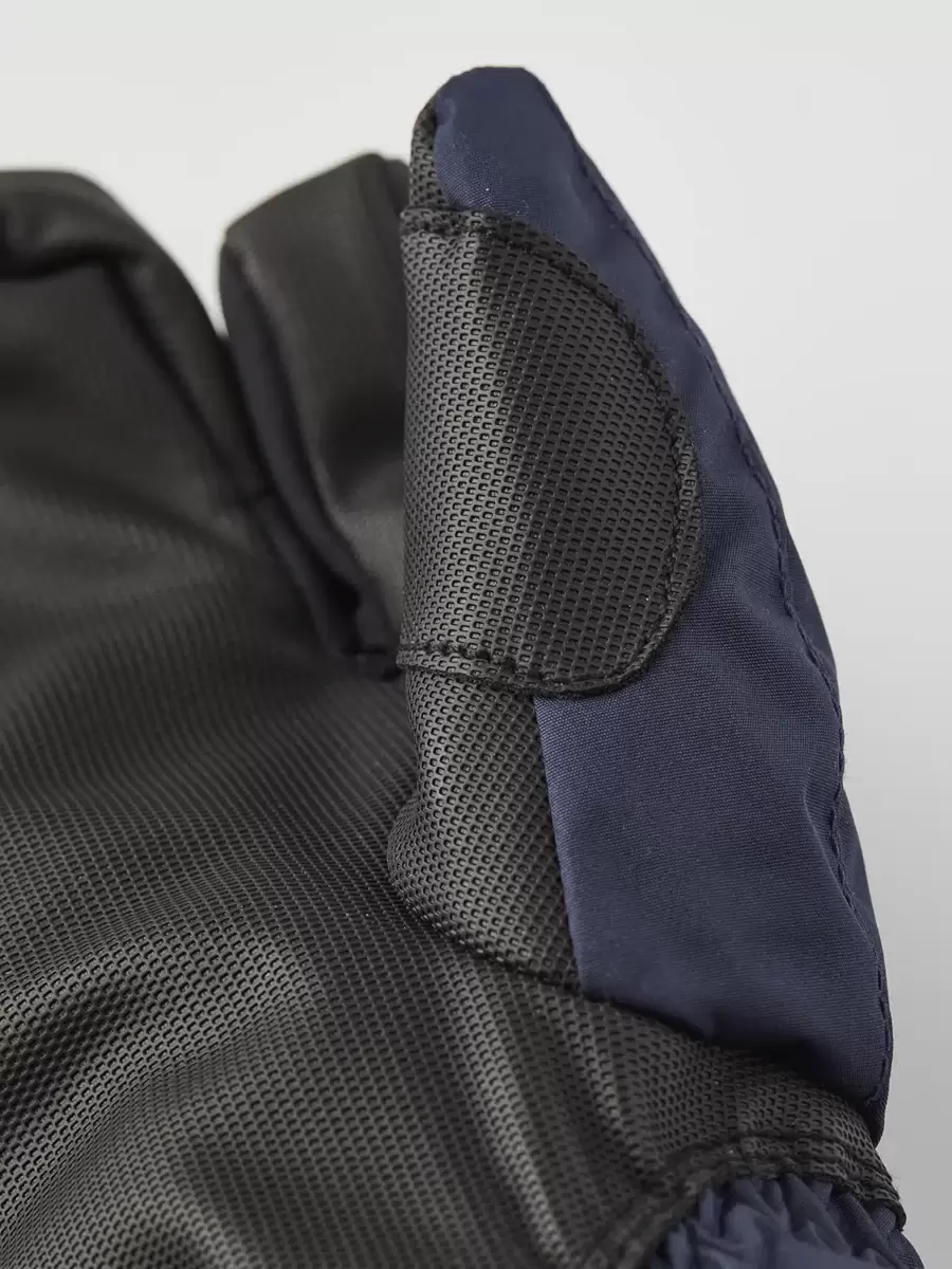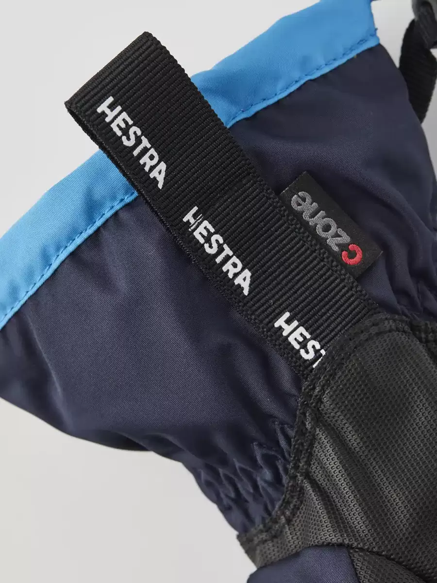 En varm og behagelig junior 3-finger handske til skiløb, leg og udendørsaktiviteter i koldt vintervejr. En af Hestras mest populære juniorhandsker, syet i slidstærk polyester med en vandtæt, åndbar CZone-membran og en længere manchet for at holde sneen ude. Fingerspidser og håndflade er forstærket med PU-belagt syntetisk stof for ekstra styrke og greb på stave, kælke og andet vinterudstyr. Foret er lavet af polyesterfleece med varm syntetisk isolering. Fås også som vante og i en fem-finger version.