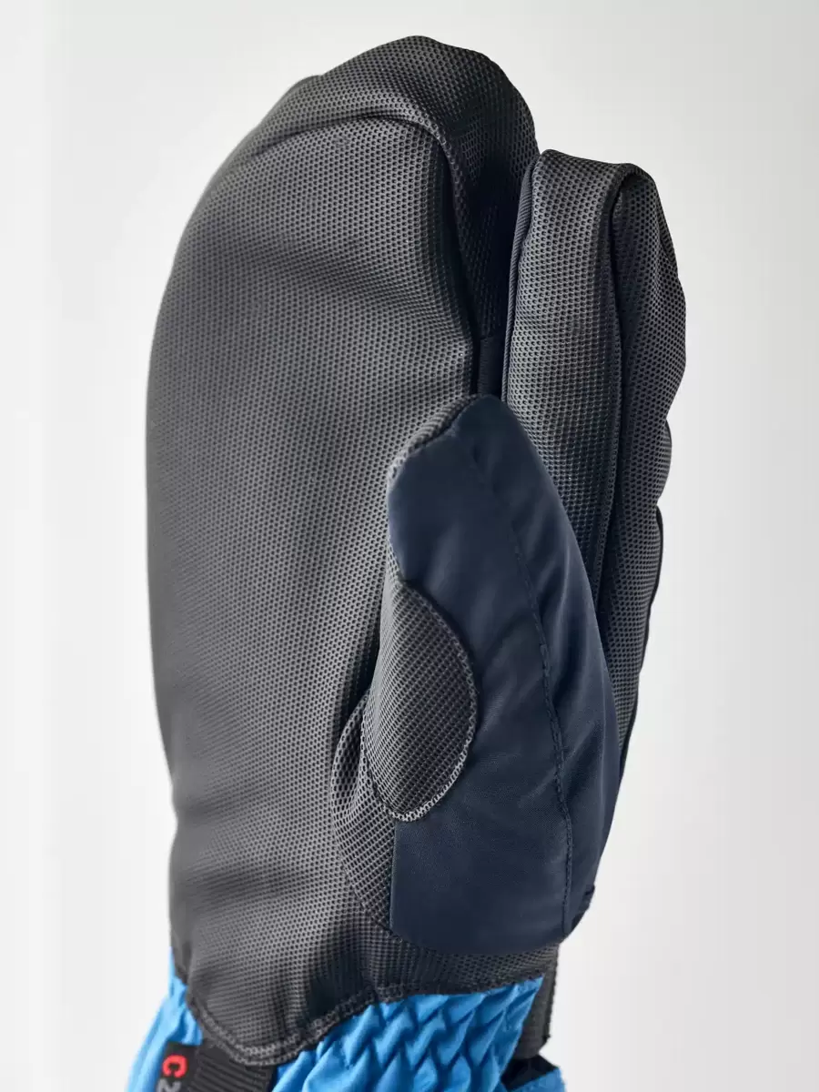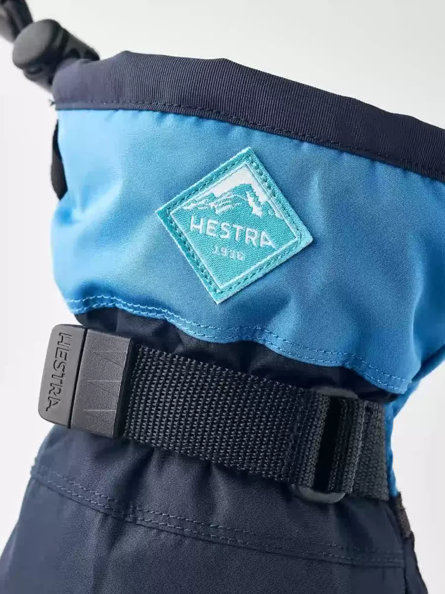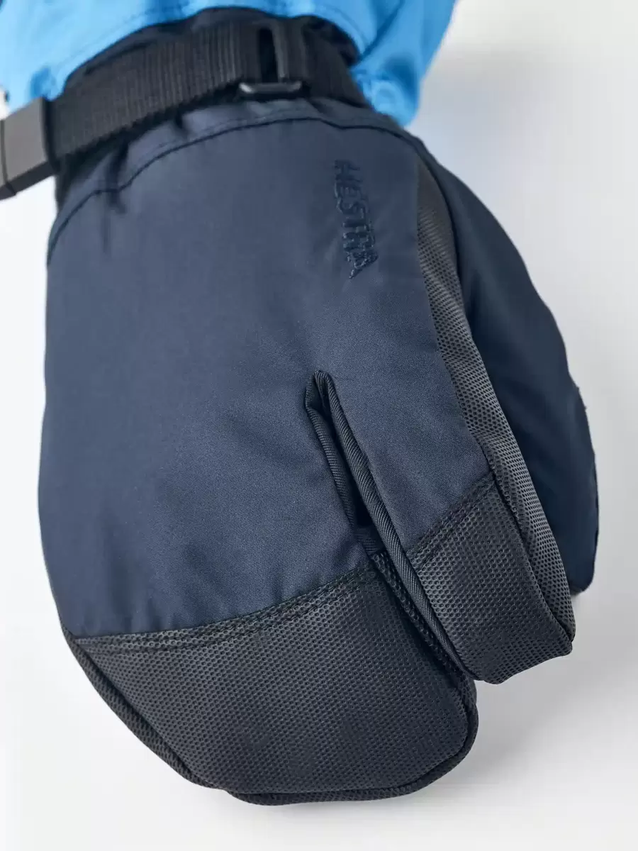 En varm og behagelig junior 3-finger handske til skiløb, leg og udendørsaktiviteter i koldt vintervejr. En af Hestras mest populære juniorhandsker, syet i slidstærk polyester med en vandtæt, åndbar CZone-membran og en længere manchet for at holde sneen ude. Fingerspidser og håndflade er forstærket med PU-belagt syntetisk stof for ekstra styrke og greb på stave, kælke og andet vinterudstyr. Foret er lavet af polyesterfleece med varm syntetisk isolering. Fås også som vante og i en fem-finger version.