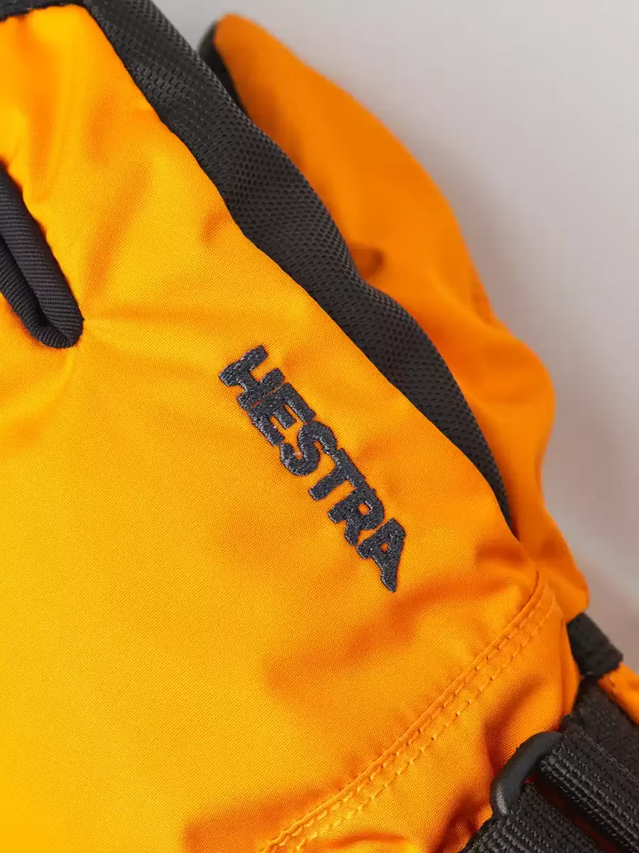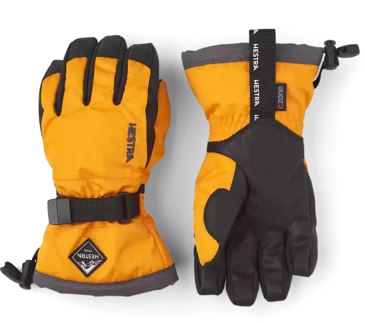 En varm og behagelig børnehandske til skiløb, leg og udendørsaktiviteter i koldt vintervejr. En af Hestras mest populære juniorhandsker, syet i slidstærk polyester med en vandtæt, åndbar CZone-membran og en længere manchet for at holde sneen ude. Fingerspidser og håndflade er forstærket med PU-belagt syntetisk stof for ekstra styrke og greb på stave, kælke og andet vinterudstyr. Foret er lavet af polyesterfleece med varm syntetisk isolering. Fås også som vante og i en trefingerversion.