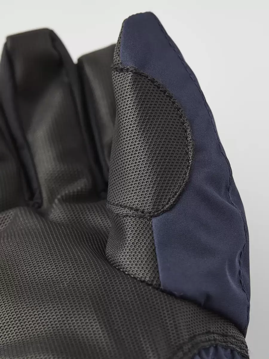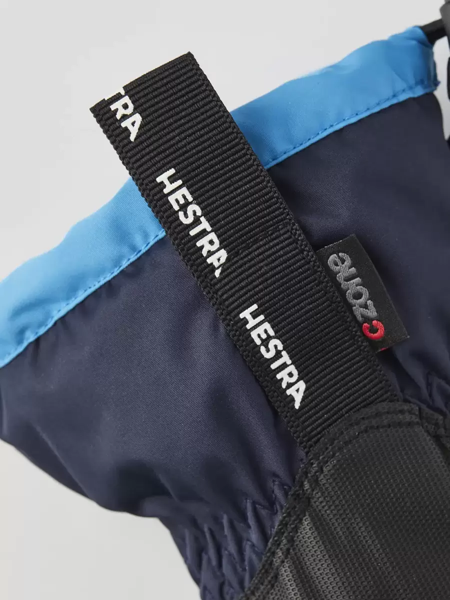 En varm og behagelig børnehandske til skiløb, leg og udendørsaktiviteter i koldt vintervejr. En af Hestras mest populære juniorhandsker, syet i slidstærk polyester med en vandtæt, åndbar CZone-membran og en længere manchet for at holde sneen ude. Fingerspidser og håndflade er forstærket med PU-belagt syntetisk stof for ekstra styrke og greb på stave, kælke og andet vinterudstyr. Foret er lavet af polyesterfleece med varm syntetisk isolering. Fås også som vante og i en trefingerversion.