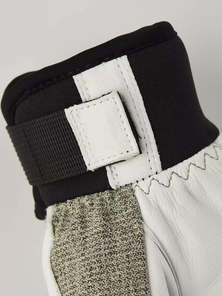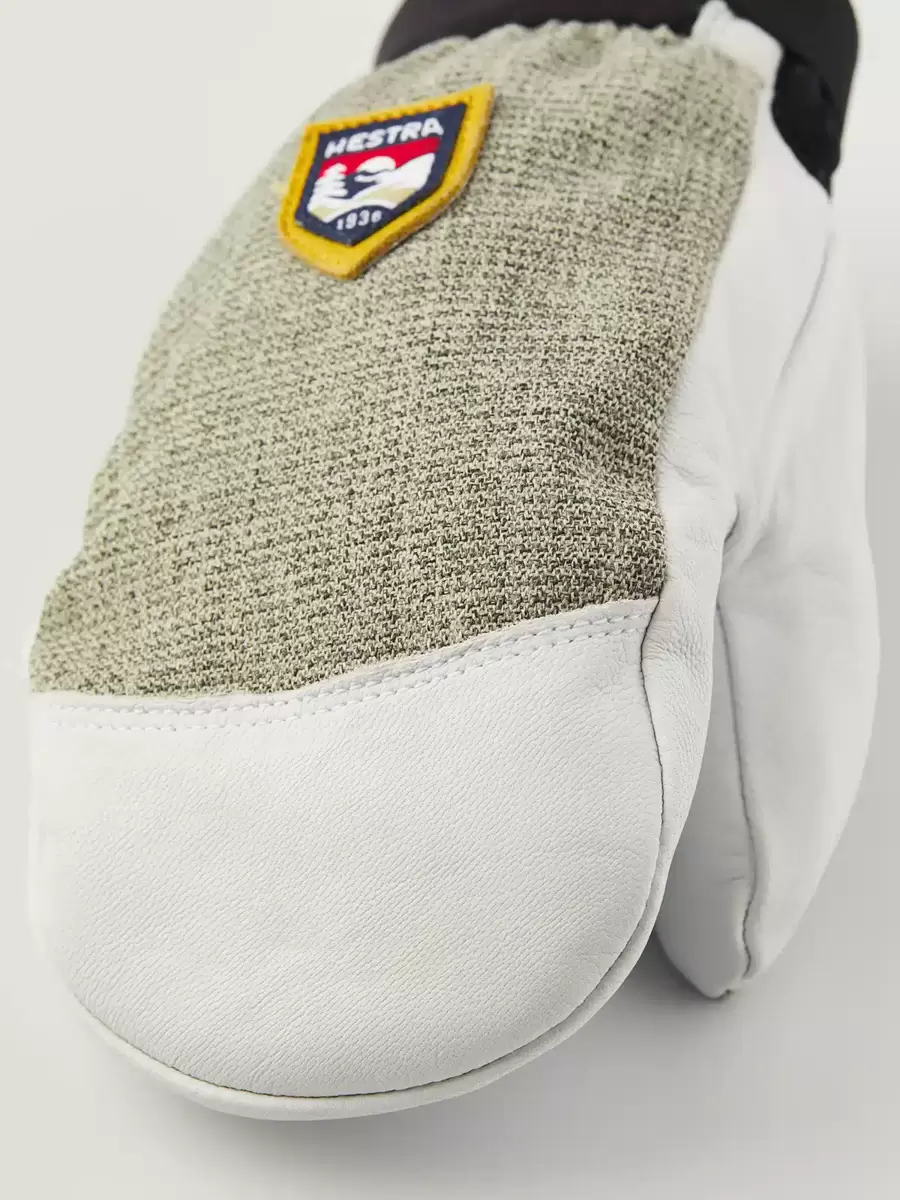 Army Leather Patrol Jr er en robust juniorhandske i en ekstra varmende vanteversion til børn, der har tendens til at få forfrosne fingre. Designet er kort, så det nemt passer under en frakkeærme, og håndleddet er omsluttet af en behagelig neoprenmanchet. Fingre og håndflade er syet i behandlet gedeskind med udvendige sømme for komfort og godt greb, mens bagsiden er i vejrbestandigt stretchstof. Et fleecefor med syntetisk isolering holder fingrene varme selv ved lave temperaturer og kan nemt tages af for vask eller tørring. Hestra håndjern (håndledsstropper) reducerer risikoen for at miste en handske, når du tager den af ​​på en lift for at bruge en telefon eller justere beskyttelsesbriller. En slidstærk og robust vinterledsager til børn, der tilbringer lange dage på pisterne, i parken, i skiløb eller alle former for snedækket terræn. Fås også i en femfingerversion.