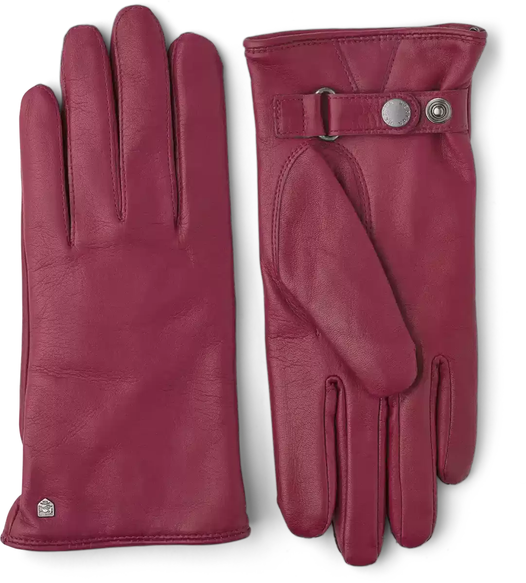 En klassisk handske i blødt læder med et varmt, strikket uldfor. Et tidløst elegant design med en dekorativ læderrem og trykknap ved håndleddet. Syet i smidigt lammeskind, behandlet for at give en vandafvisende overflade. Uldforet er behageligt varmt, selvom det bliver let fugtigt. Perfekt til den daglige pendling og til afslappende weekendture om efteråret og milde dage om vinteren.