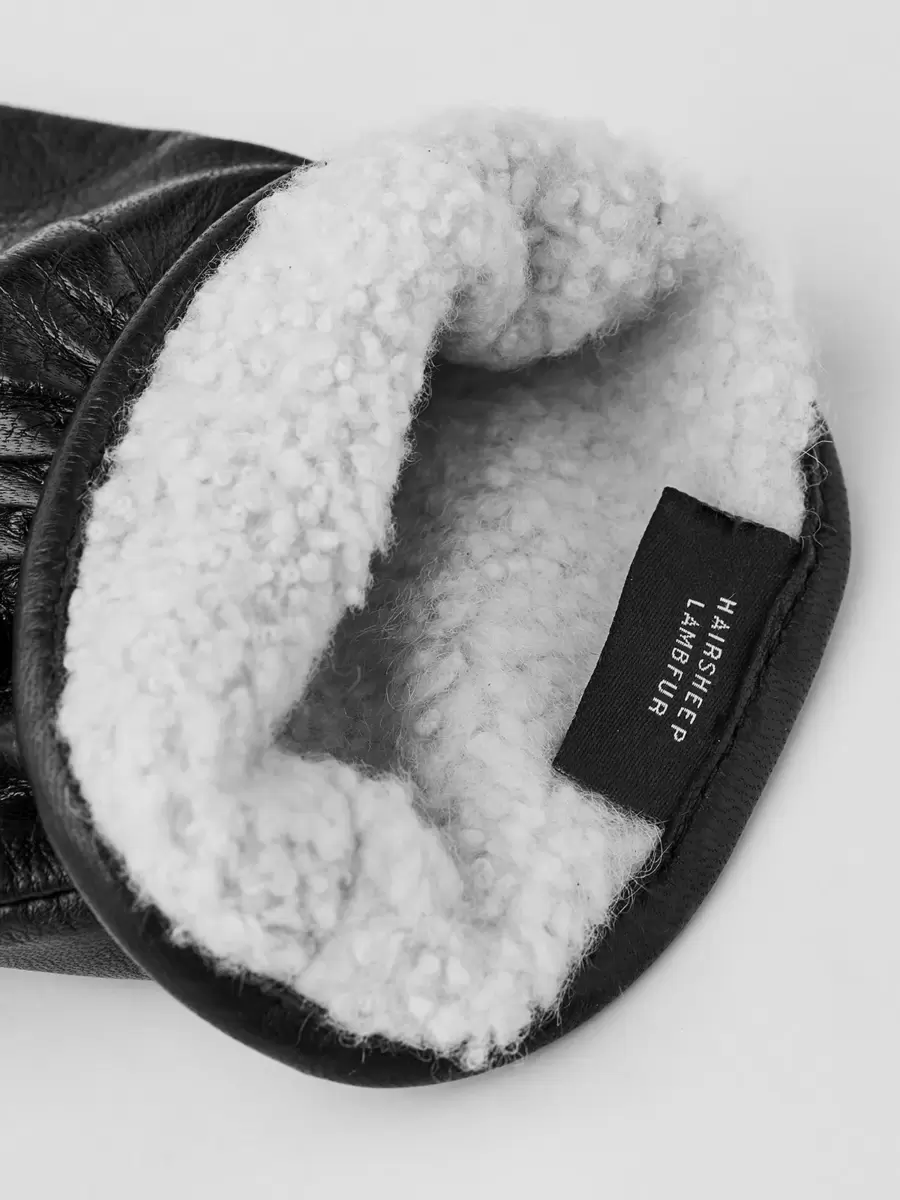 En smukt let og varm lædervante med et pænt, feminint snit. Syet i italiensk lammeskind, et blødt og smidigt læder med en smuk glans. Lammeskindsforet omslutter din hånd i en behagelig varme. En elegant vante, der er dejlig varm og behagelig – skabt til skandinaviske vintre.
