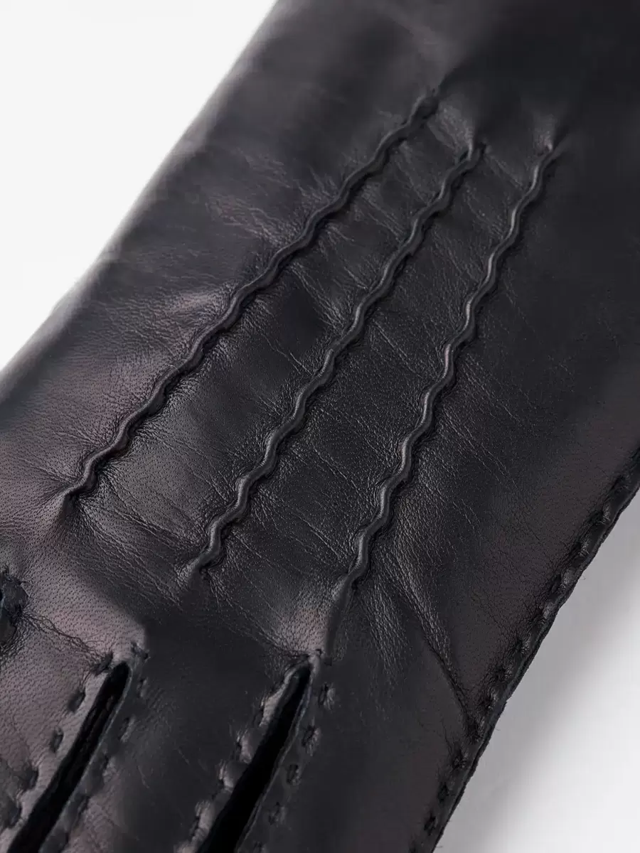 En elegant, håndsyet damehandske i eksklusiv italiensk lamme-nappa. En klassisk, smuk handske til mange lejligheder med et tyndt, strikket uldfor, der varmer på kølige efterårsdage. Omhyggeligt udvalgt læder og fantastiske syninger skaber en diskret, luksuriøs handske, der vil holde længe og sætte prikken over i’et på dit outfit for dagen.
