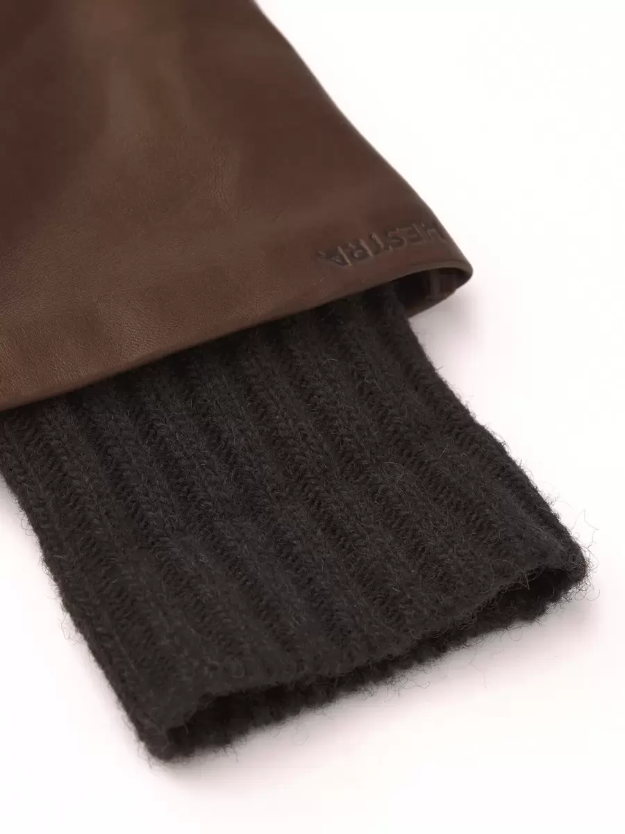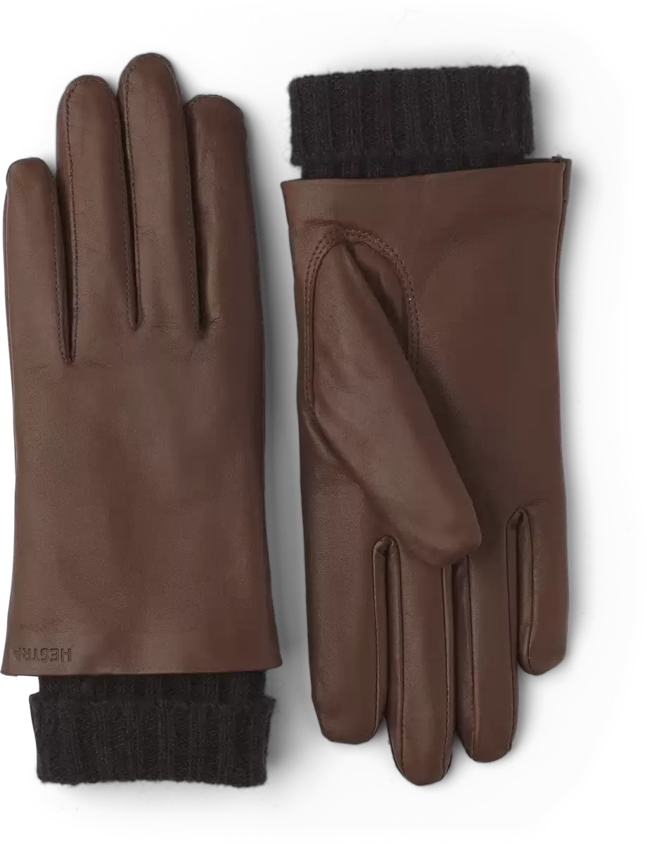 En stilfuld, minimalistisk læderhandske med et blødt, strikket uldfor. Syet i eksklusiv italiensk lamme-nappa, et blødt, smidigt læder med en smuk glans. Behagelig varmende om foråret og efteråret og også ideel på mildere vinterdage. Snittet sidder tæt til hånden med halve piqué-sømme omkring fingrene. En lang, strikket manchet varmer blidt omkring håndleddet og giver en flot kontrast til læderet. Kvalitetshåndværk og materialer skaber et tidløst modetilbehør til hverdagsbrug og særlige lejligheder. Megan-handsken fås i en række farver fra klassisk sort til smukke sæsonbestemte nuancer.