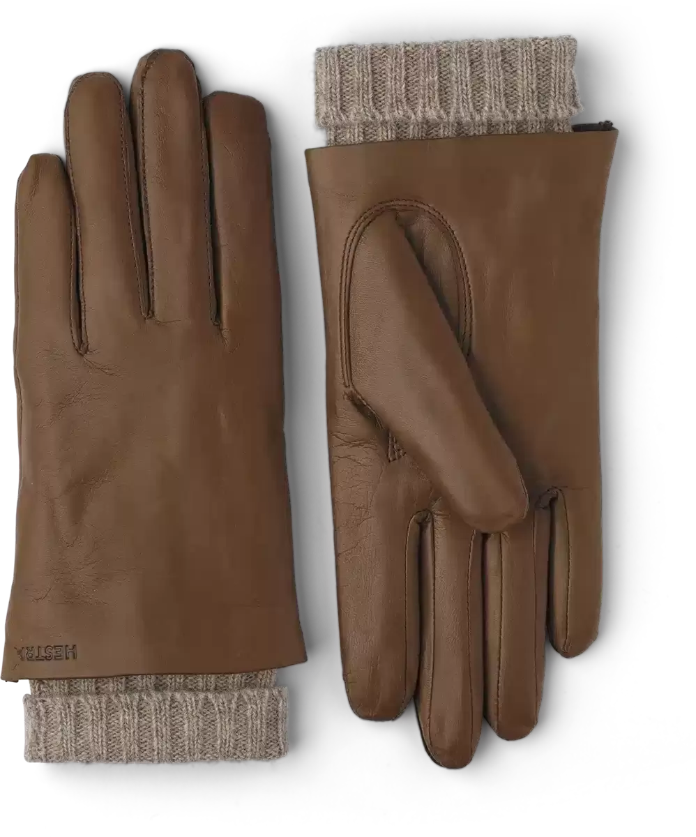 En stilfuld, minimalistisk læderhandske med et blødt, strikket uldfor. Syet i eksklusiv italiensk lamme-nappa, et blødt, smidigt læder med en smuk glans. Behagelig varmende om foråret og efteråret og også ideel på mildere vinterdage. Snittet sidder tæt til hånden med halve piqué-sømme omkring fingrene. En lang, strikket manchet varmer blidt omkring håndleddet og giver en flot kontrast til læderet. Kvalitetshåndværk og materialer skaber et tidløst modetilbehør til hverdagsbrug og særlige lejligheder. Megan-handsken fås i en række farver fra klassisk sort til smukke sæsonbestemte nuancer.