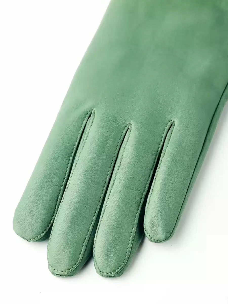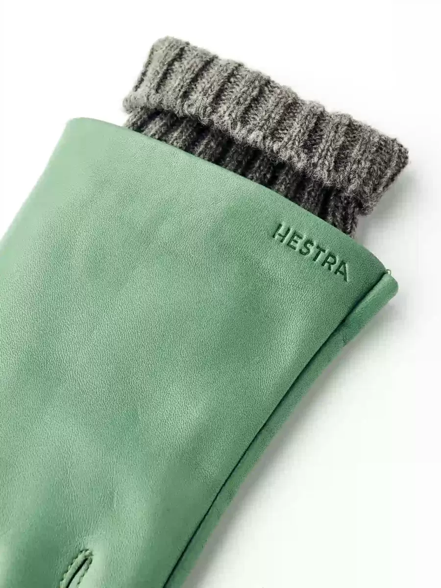 En stilfuld, minimalistisk læderhandske med et blødt, strikket uldfor. Syet i eksklusiv italiensk lamme-nappa, et blødt, smidigt læder med en smuk glans. Behagelig varmende om foråret og efteråret og også ideel på mildere vinterdage. Snittet sidder tæt til hånden med halve piqué-sømme omkring fingrene. En lang, strikket manchet varmer blidt omkring håndleddet og giver en flot kontrast til læderet. Kvalitetshåndværk og materialer skaber et tidløst modetilbehør til hverdagsbrug og særlige lejligheder. Megan-handsken fås i en række farver fra klassisk sort til smukke sæsonbestemte nuancer.