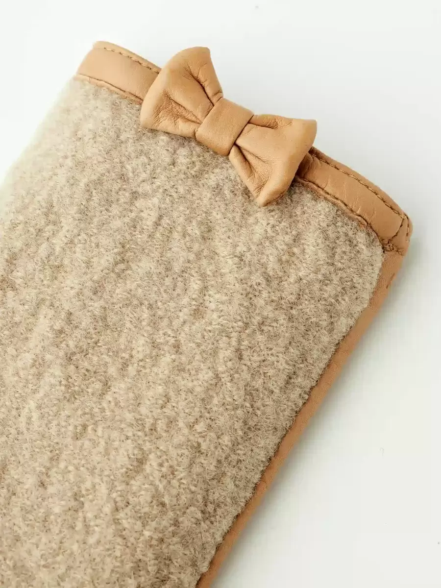 Klassisk og stilfuld, men med et twist – Millie er en smart modehandske til efterår, forår og mindre kølige vinterdage. Håndfladen er lavet af ultrablød italiensk lamme-nappa med en smuk glans. Den bouclé-strikkede bagside står i kontrast til læderets glatte overflade.