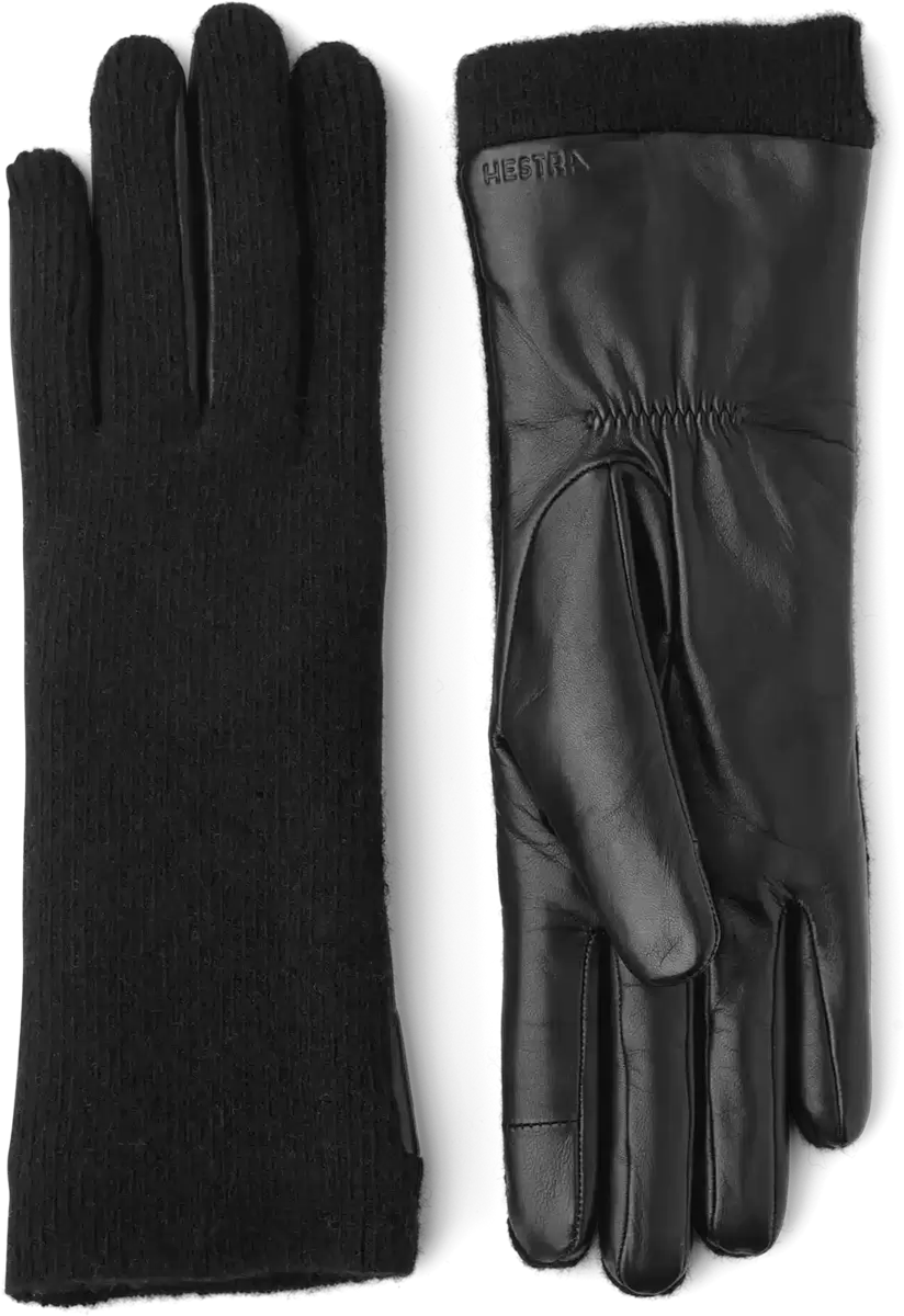 Cashmir møder lamme-nappa i denne elegante modehandske, der varmer med en blød og luksuriøs fornemmelse. Bagsiden er strikket i den blødeste cashmereuld, mens håndfladen er i eksklusiv italiensk lamme-nappa. Den har også et blødt, strikket for i en matchende farve, også i cashmere. Farve 100 har en touchfunktion, der lader dig besvare din smartphone uden at tage handsken af.