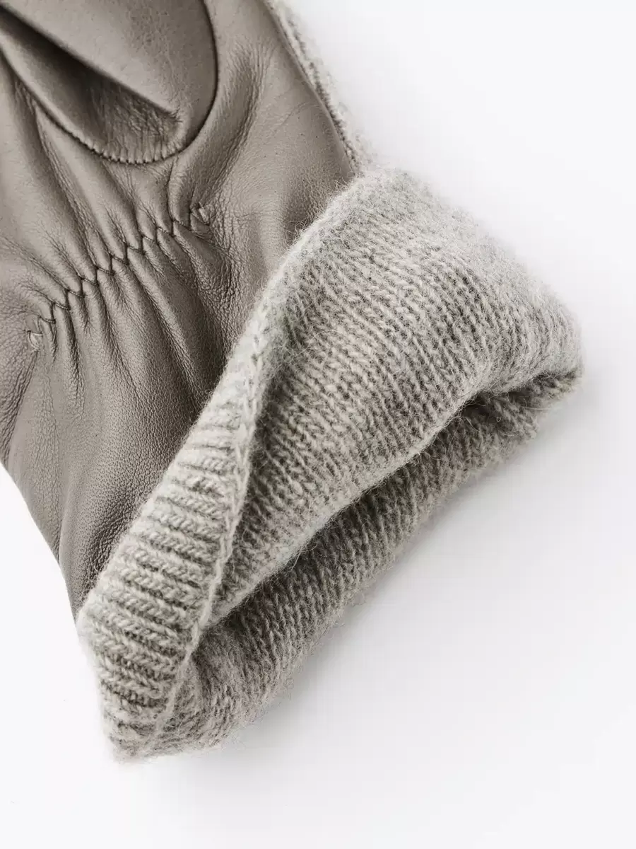 Cashmir møder lamme-nappa i denne elegante modehandske, der varmer med en blød og luksuriøs fornemmelse. Bagsiden er strikket i den blødeste cashmereuld, mens håndfladen er i eksklusiv italiensk lamme-nappa. Den har også et blødt, strikket for i en matchende farve, også i cashmere. Farve 100 har en touchfunktion, der lader dig besvare din smartphone uden at tage handsken af.
