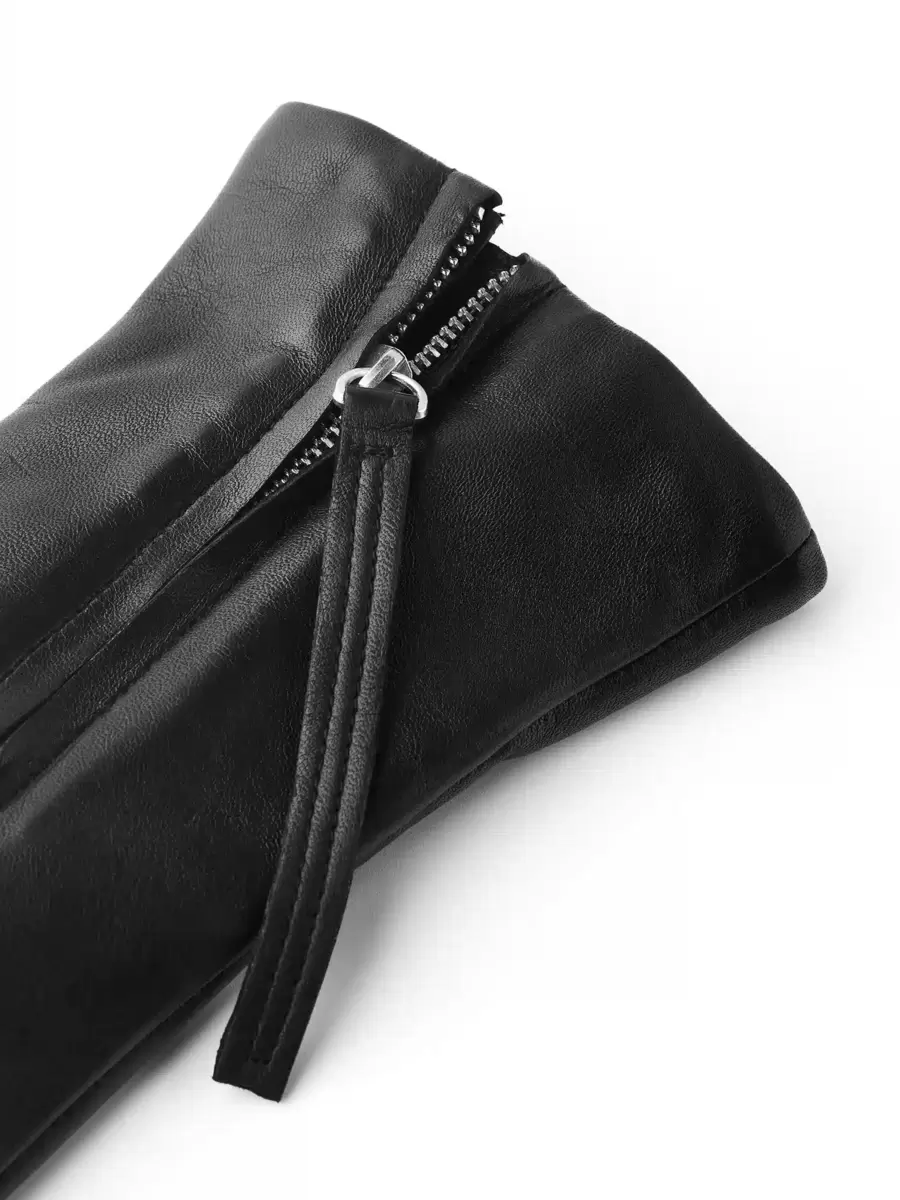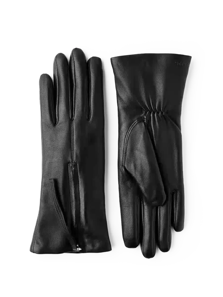 Pasformen sidder tæt til hånden med en lille elastik på indersiden af ​​håndleddet. En lynlås på bagsiden af ​​hånden tilføjer et karakteristisk look og gør det nemmere at tage handsken af ​​og på. Syninger og materialer af høj kvalitet skaber et smukt modetilbehør, der løfter ethvert outfit, både til hverdagsbrug og særlige lejligheder.