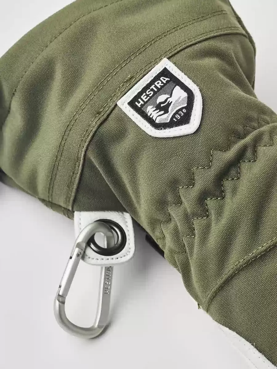 Hestras Army Leather Heli Ski blev oprindeligt skabt til skipiders i det vestlige Canada, der havde brug for en pålidelig og varm skihandske til lange, kolde dage i sneen. Denne damevante har et smallere snit, der passer til kvinders smallere hænder. Ligesom alle vanteversioner giver den masser af plads til fingrene, hvilket gør den varmere end den tilsvarende handske. Yderhandsken er syet i en slidstærk, vejrbestandig kombination af gedeskind og 3-lags polyamidstof. En række smarte funktioner er praktiske, når du ikke kan gå indendørs for at varme dig op så ofte. For eksempel er foret nemt at fjerne og tørre eller udskifte med en tyndere inderhandske, når du er mere aktiv og vandrer op ad bakke. I puddersne holder den lange manchet med snelås og håndledsjustering sneen på ydersiden og varmen på indersiden. En håndledsrem reducerer risikoen for at tabe en handske, hvis du tager den af ​​for at justere dit udstyr eller bruge din telefon. Og den medfølgende karabinhage betyder, at du kan hænge handsken op med åbningen nedad – praktisk, når du kun har et tyndere for på og vil undgå, at dine handsker fyldes med sne. En slidstærk og fleksibel ledsager til skiløbere, der bruger meget tid udendørs, og som ofte befinder sig langt fra skisportsstedet og dets komfort. Fås også i 3-finger og 5-finger modeller.