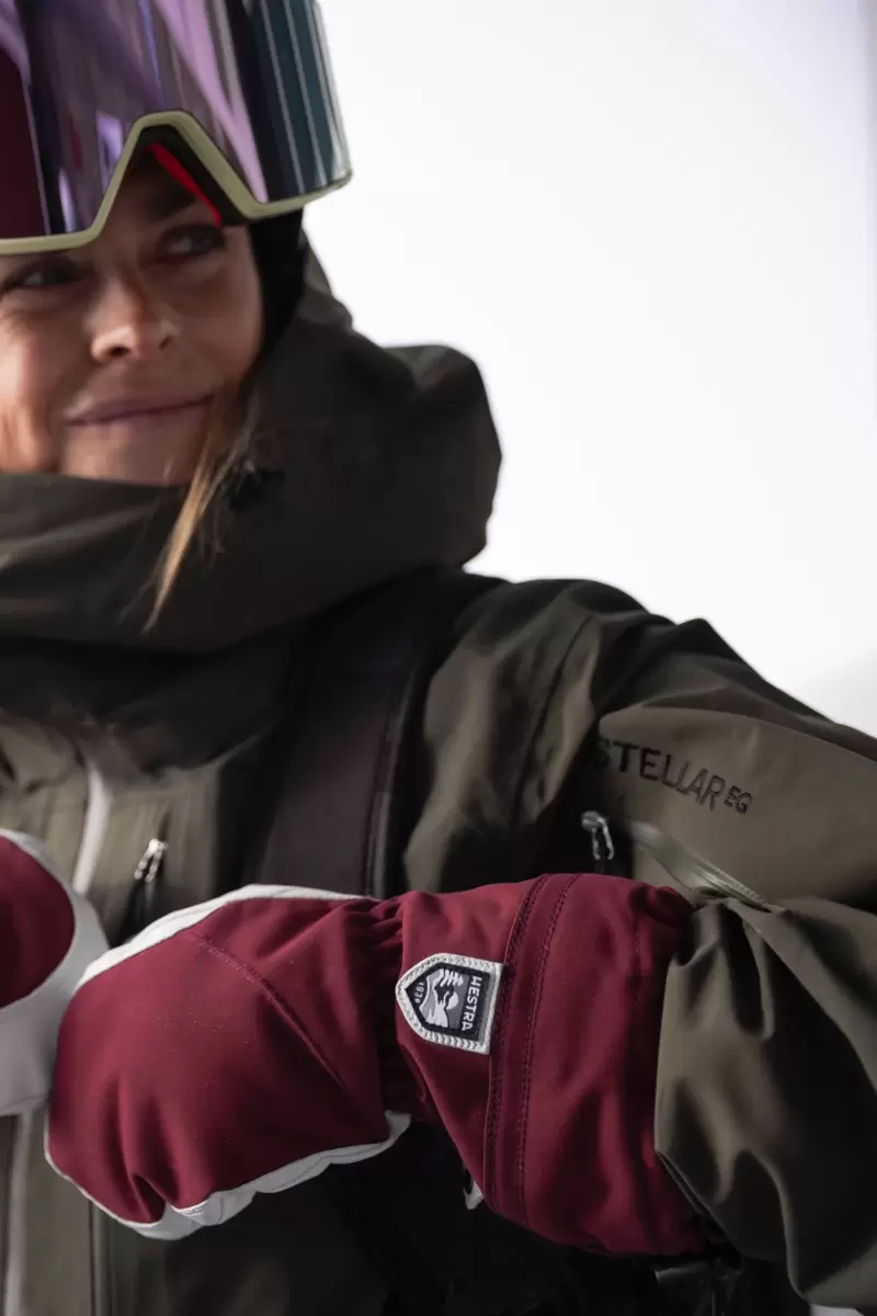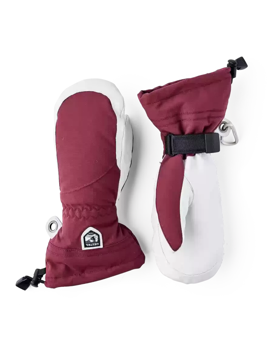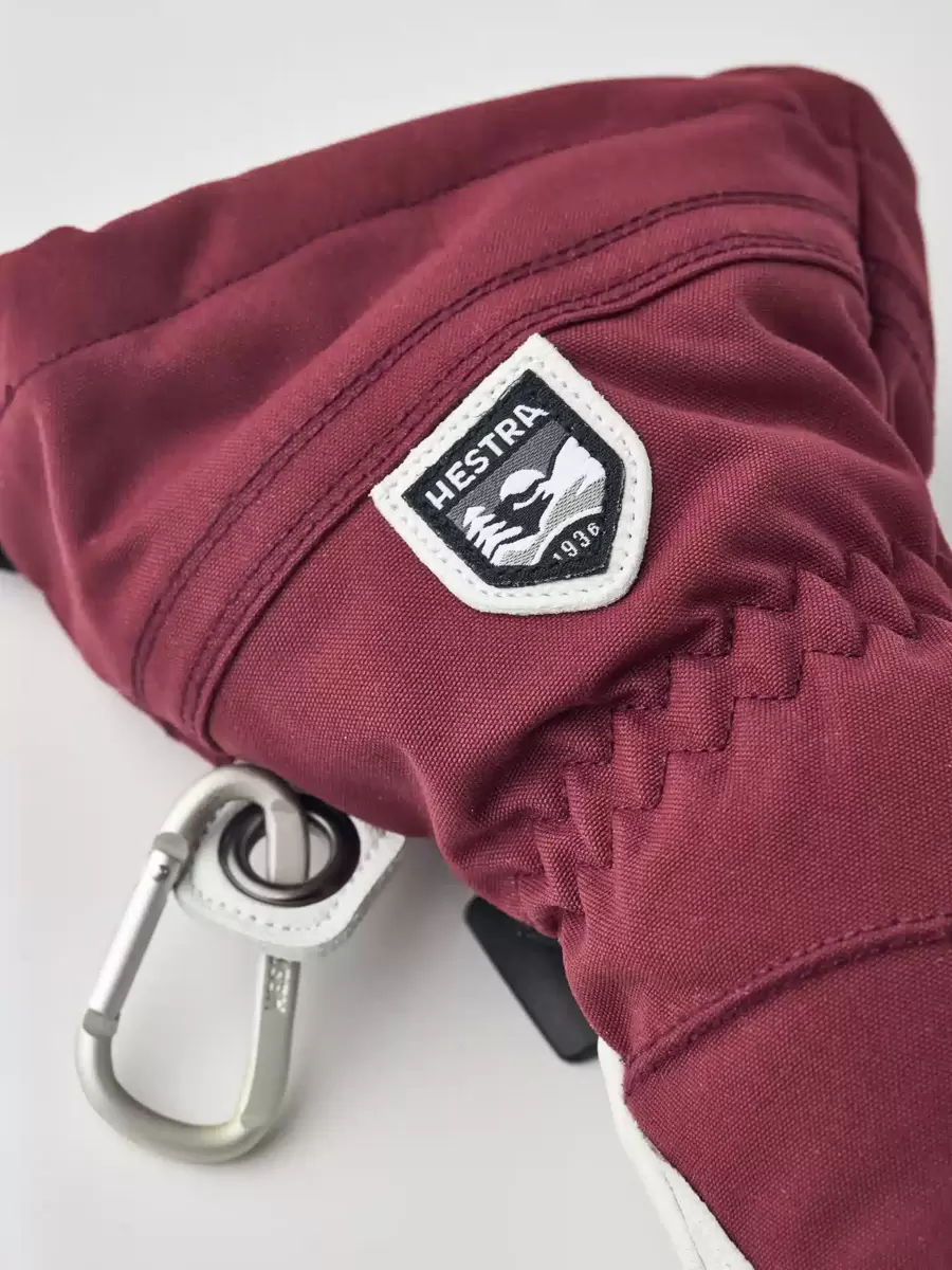 Hestras Army Leather Heli Ski blev oprindeligt skabt til skipiders i det vestlige Canada, der havde brug for en pålidelig og varm skihandske til lange, kolde dage i sneen. Denne damevante har et smallere snit, der passer til kvinders smallere hænder. Ligesom alle vanteversioner giver den masser af plads til fingrene, hvilket gør den varmere end den tilsvarende handske. Yderhandsken er syet i en slidstærk, vejrbestandig kombination af gedeskind og 3-lags polyamidstof. En række smarte funktioner er praktiske, når du ikke kan gå indendørs for at varme dig op så ofte. For eksempel er foret nemt at fjerne og tørre eller udskifte med en tyndere inderhandske, når du er mere aktiv og vandrer op ad bakke. I puddersne holder den lange manchet med snelås og håndledsjustering sneen på ydersiden og varmen på indersiden. En håndledsrem reducerer risikoen for at tabe en handske, hvis du tager den af ​​for at justere dit udstyr eller bruge din telefon. Og den medfølgende karabinhage betyder, at du kan hænge handsken op med åbningen nedad – praktisk, når du kun har et tyndere for på og vil undgå, at dine handsker fyldes med sne. En slidstærk og fleksibel ledsager til skiløbere, der bruger meget tid udendørs, og som ofte befinder sig langt fra skisportsstedet og dets komfort. Fås også i 3-finger og 5-finger modeller.