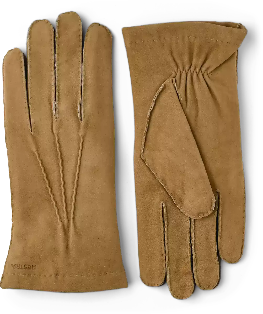 En klassisk herrehandske i ruskind med strikket uldfor. Arthur-handsken er håndsyet i dejligt blødt italiensk lammeskind med en tætsiddende pasform. Det tidløse design har dekorative syninger på bagsiden af hånden. En let, varmende og utrolig blød handske til kølige vinterdage, der både er hjemmevant i byen og i mere landlige omgivelser.