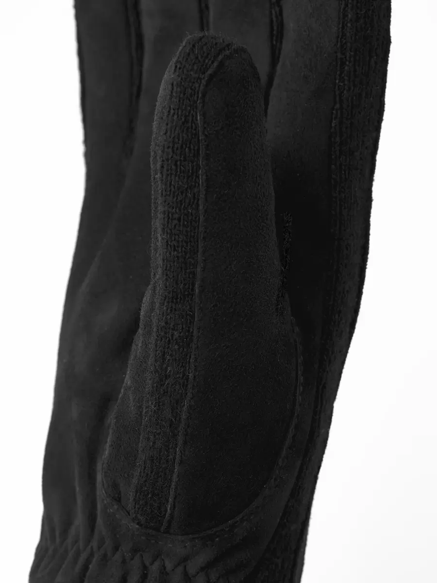 En sporty og behagelig handske, der kombinerer uld og det blødeste lammeskindsruskind. Geoffrey-handsken er en stilfuld og varmende herrehandske til efterår og mildere vinterdage. En sidekile og detaljer er i ribstrikket uldjersey, mens baghånden og håndfladen er i italiensk lammeskindsruskind. Halvpiqué-sømme omkring fingrene giver en god pasform, og en ribbet manchet omslutter håndleddet.