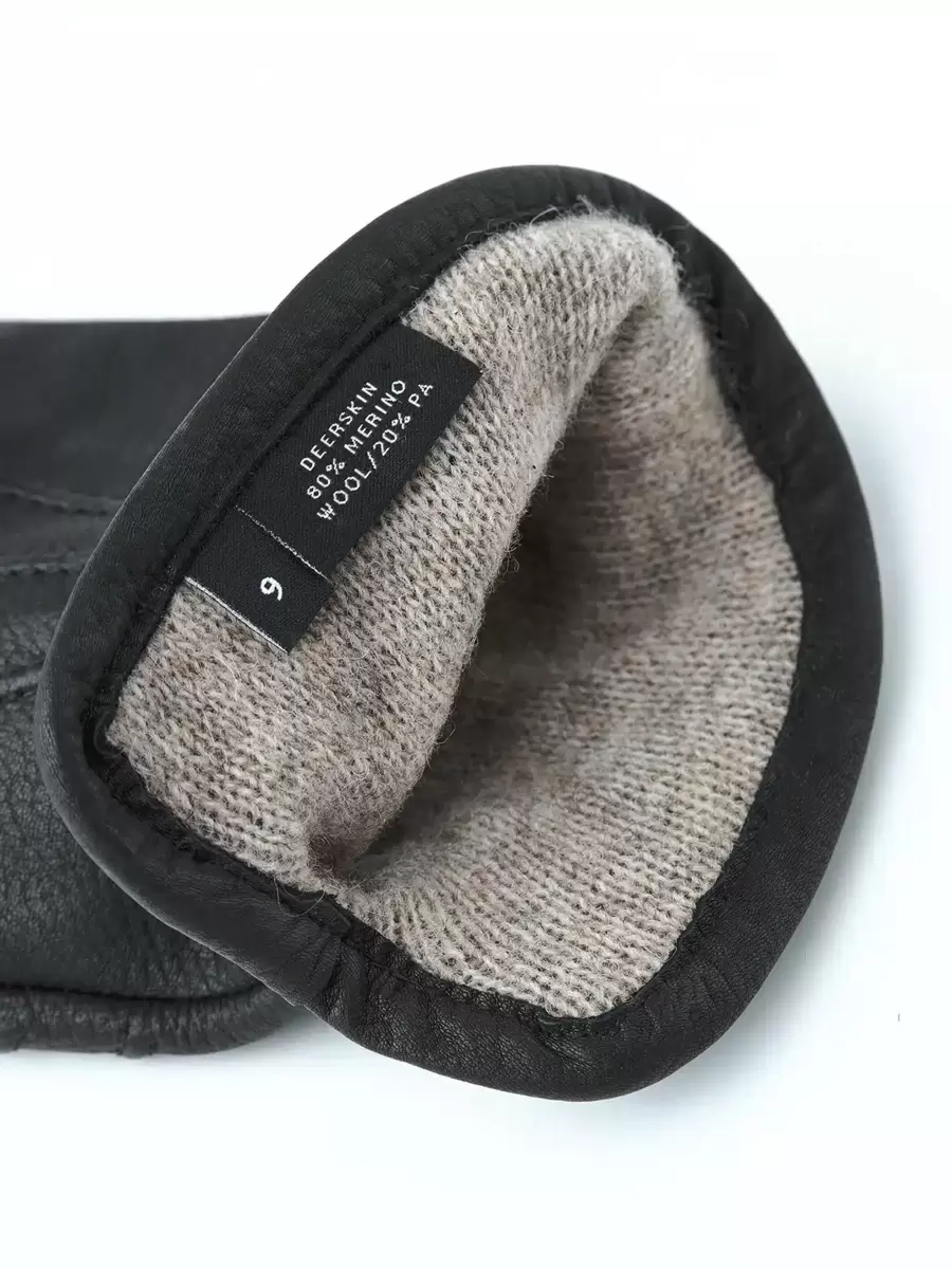 En varm og behagelig læderhandske i et enkelt, tidløst herredesign. Skåret af ét stykke hjorteskind, et smidigt, isolerende læder med en smuk narvning. Dekorative syninger på bagsiden af hånden tilføjer et klassisk look, og halvpiqué-sømme giver fleksibilitet. Derudover har handsken også et blødt, strikket for i merinould for ekstra varme på kolde vinterdage.