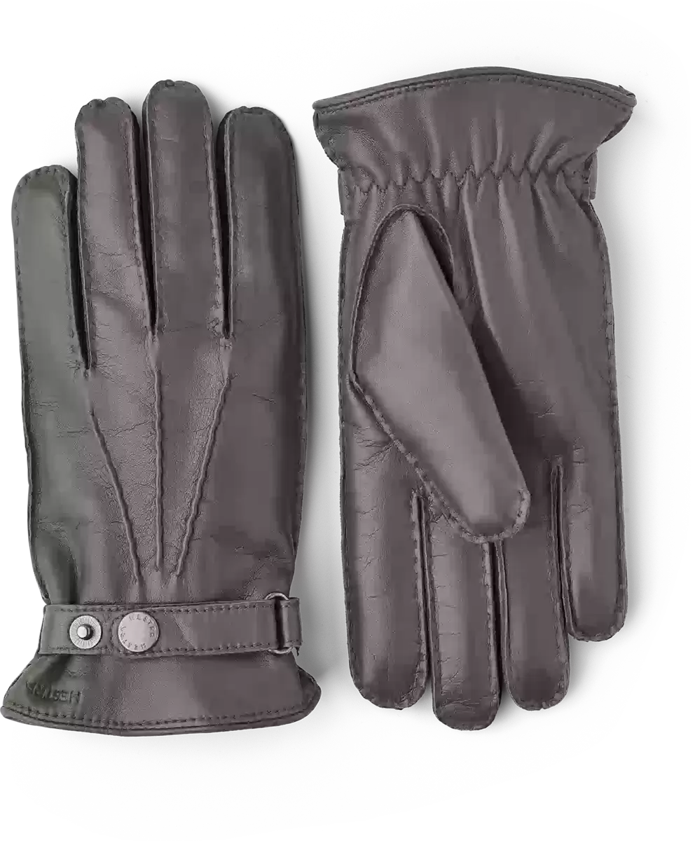 Godt håndværk og omhyggeligt udvalgte naturmaterialer giver denne attraktive herrehandske stil. Jake-handsken er håndsyet i blødt og smidigt lamme-nappa fra italienske kvalitetsgarverier og har et strikket uldfor for behagelig varme på kølige efterårs- og vinterdage. Pasformen sidder tæt mod hånden med udadvendte sømme og en læderrem med trykknap ved håndleddet. Dekorative syninger på bagsiden af hånden giver plads til bevægelse og et strejf af klassisk stil. Denne handske tilføjer det sidste touch til et elegant hverdagslook og er lige så hjemmevant i mere afslappede sammenhænge.