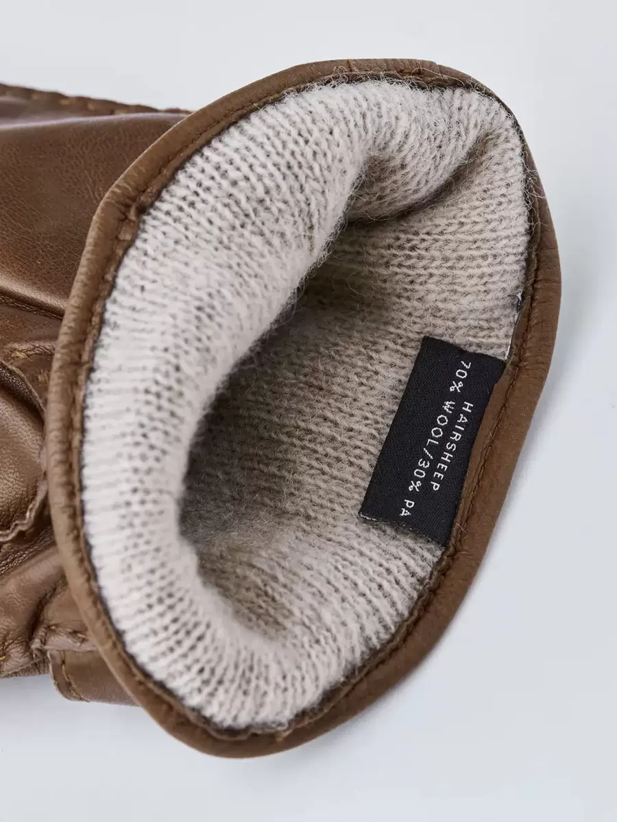 Godt håndværk og omhyggeligt udvalgte naturmaterialer giver denne attraktive herrehandske stil. Jake-handsken er håndsyet i blødt og smidigt lamme-nappa fra italienske kvalitetsgarverier og har et strikket uldfor for behagelig varme på kølige efterårs- og vinterdage. Pasformen sidder tæt mod hånden med udadvendte sømme og en læderrem med trykknap ved håndleddet. Dekorative syninger på bagsiden af ​​hånden giver plads til bevægelse og et strejf af klassisk stil. Denne handske tilføjer det sidste touch til et elegant hverdagslook og er lige så hjemmevant i mere afslappede sammenhænge.