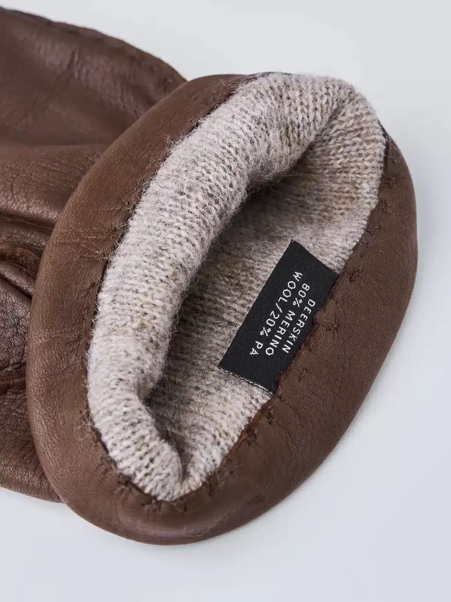 Denne håndsyede hjorteskindshandske har et blødt, strikket uldfor. Et populært herredesign med et tidløst snit i lækre materialer, der er perfekt varmende til kølige vinterture i byen eller ude i den fri. Syet i hånden i omhyggeligt udvalgt kvalitetshjorteskind, et blødt og smidigt læder, der giver god isolering og tilføjer et rustikt look. Snittet er tætsiddende med en blød elastisk manchet på indersiden af håndleddet. Udvendige sømme og dekorative syninger på bagsiden af hånden tilføjer en diskret stilfølelse.
