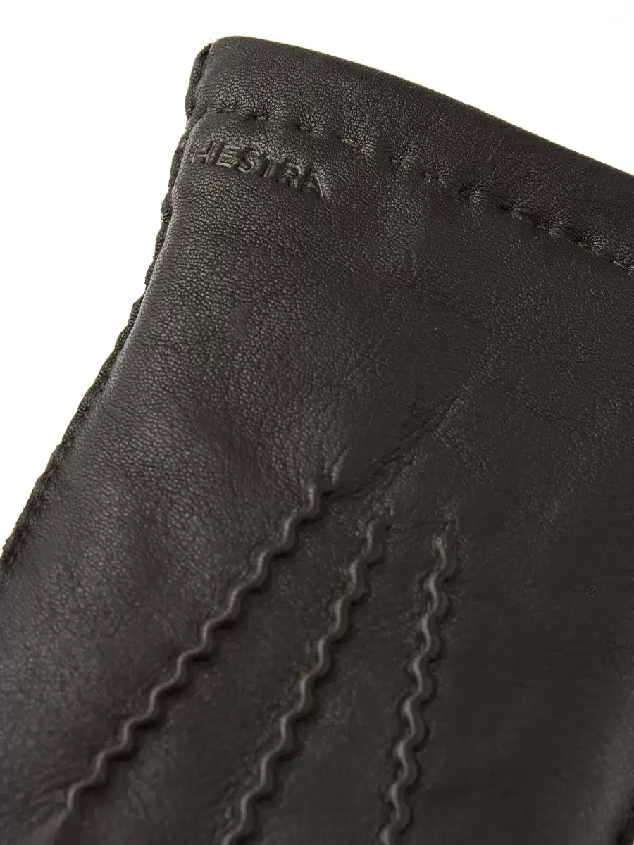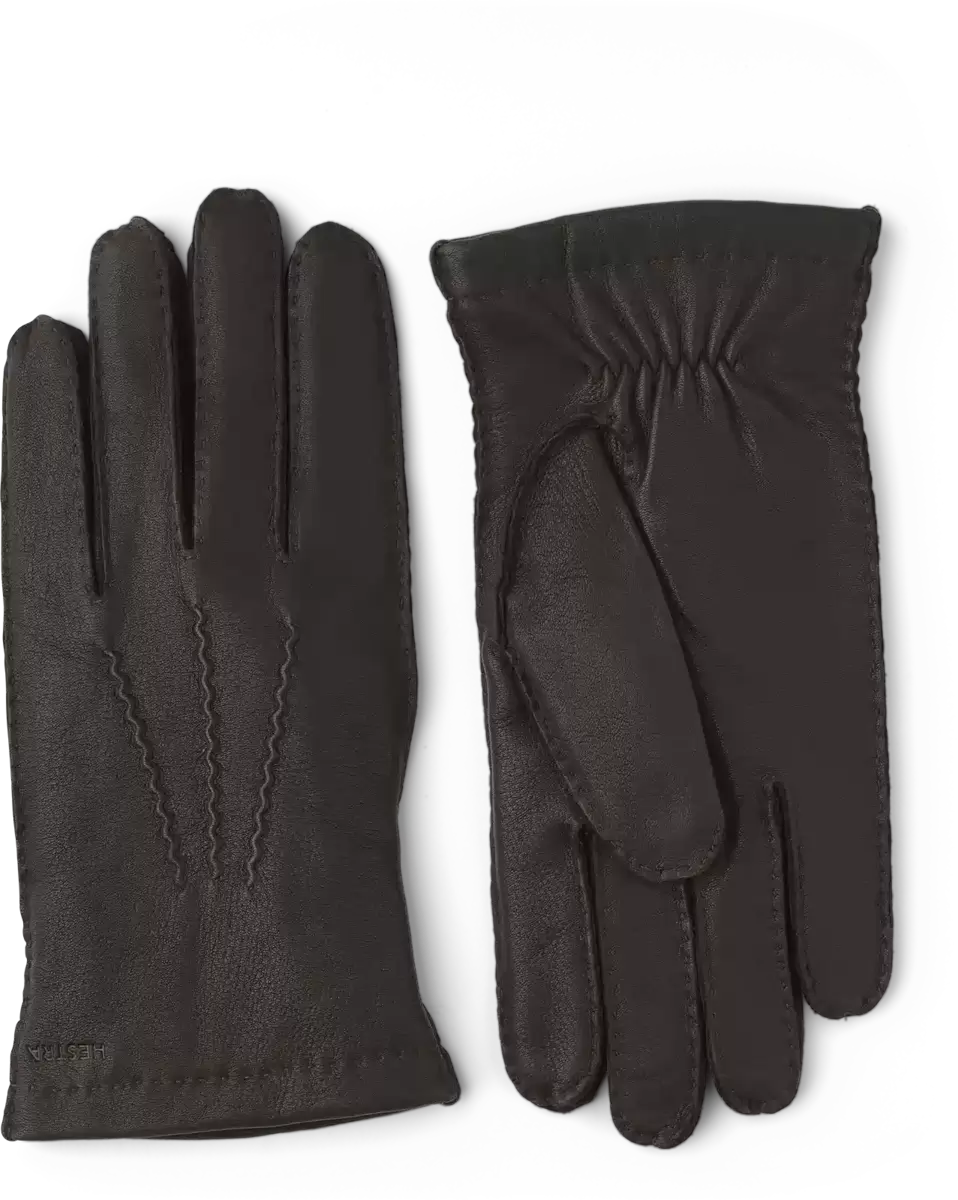 Denne håndsyede hjorteskindshandske har et blødt, strikket uldfor. Et populært herredesign med et tidløst snit i lækre materialer, der er perfekt varmende til kølige vinterture i byen eller ude i den fri. Syet i hånden i omhyggeligt udvalgt kvalitetshjorteskind, et blødt og smidigt læder, der giver god isolering og tilføjer et rustikt look. Snittet er tætsiddende med en blød elastisk manchet på indersiden af håndleddet. Udvendige sømme og dekorative syninger på bagsiden af hånden tilføjer en diskret stilfølelse.