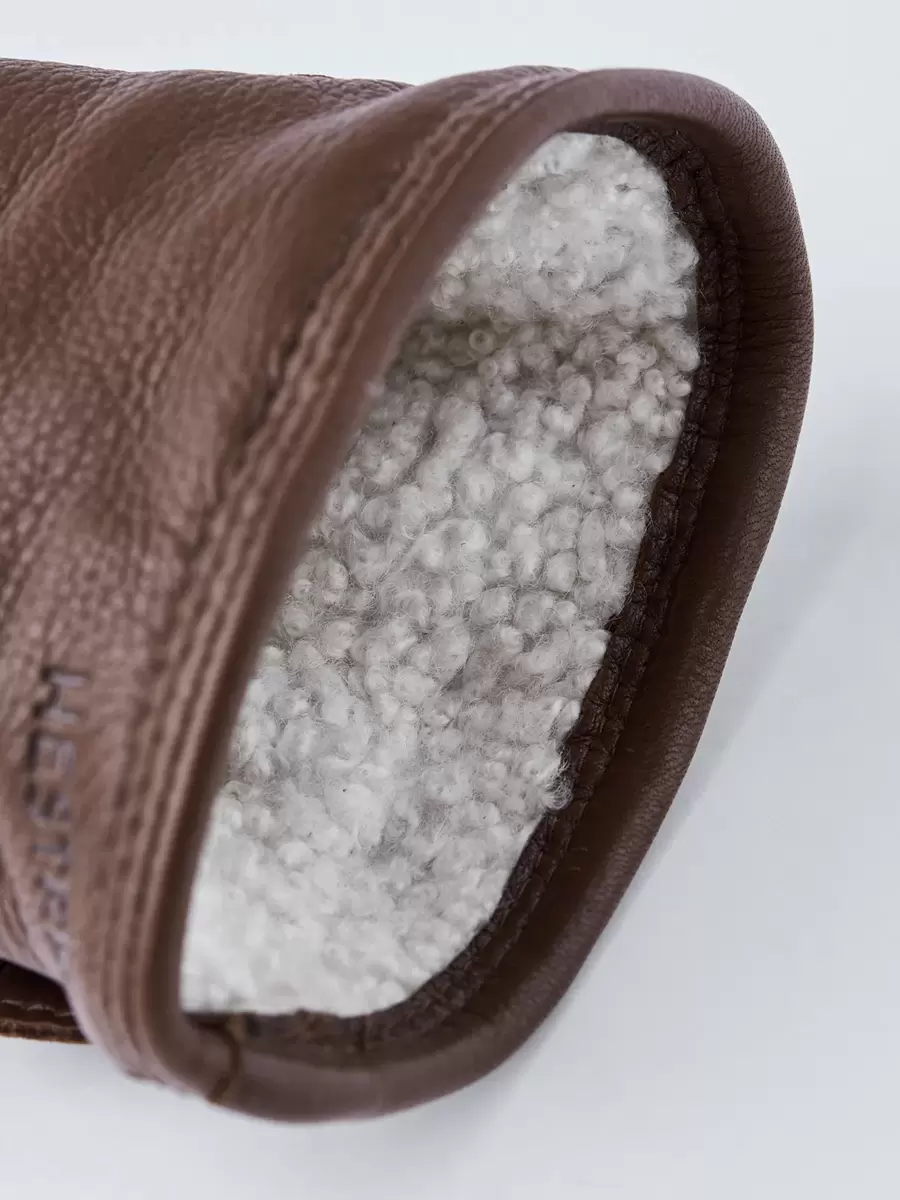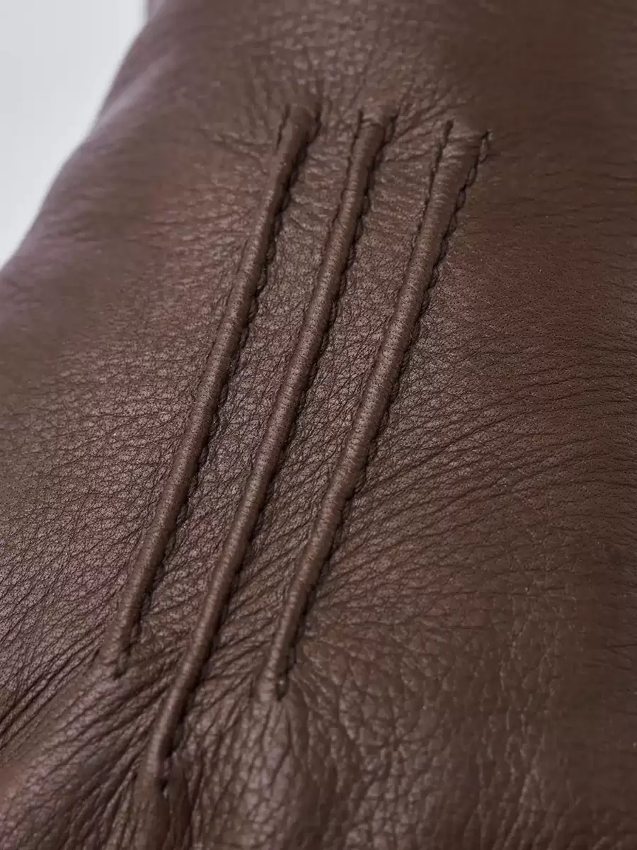 Som navnet antyder, er Deerskin Lambskin-handsken en handske med naturlige materialer som hovedingredienser, både indvendigt og udvendigt. Den er syet i hjorteskind, et smidigt, rustikt læder med god isolering. Indeni er der et for af blødt lammeskind*, der varmer dejligt selv ved rigtig kolde vintertemperaturer.