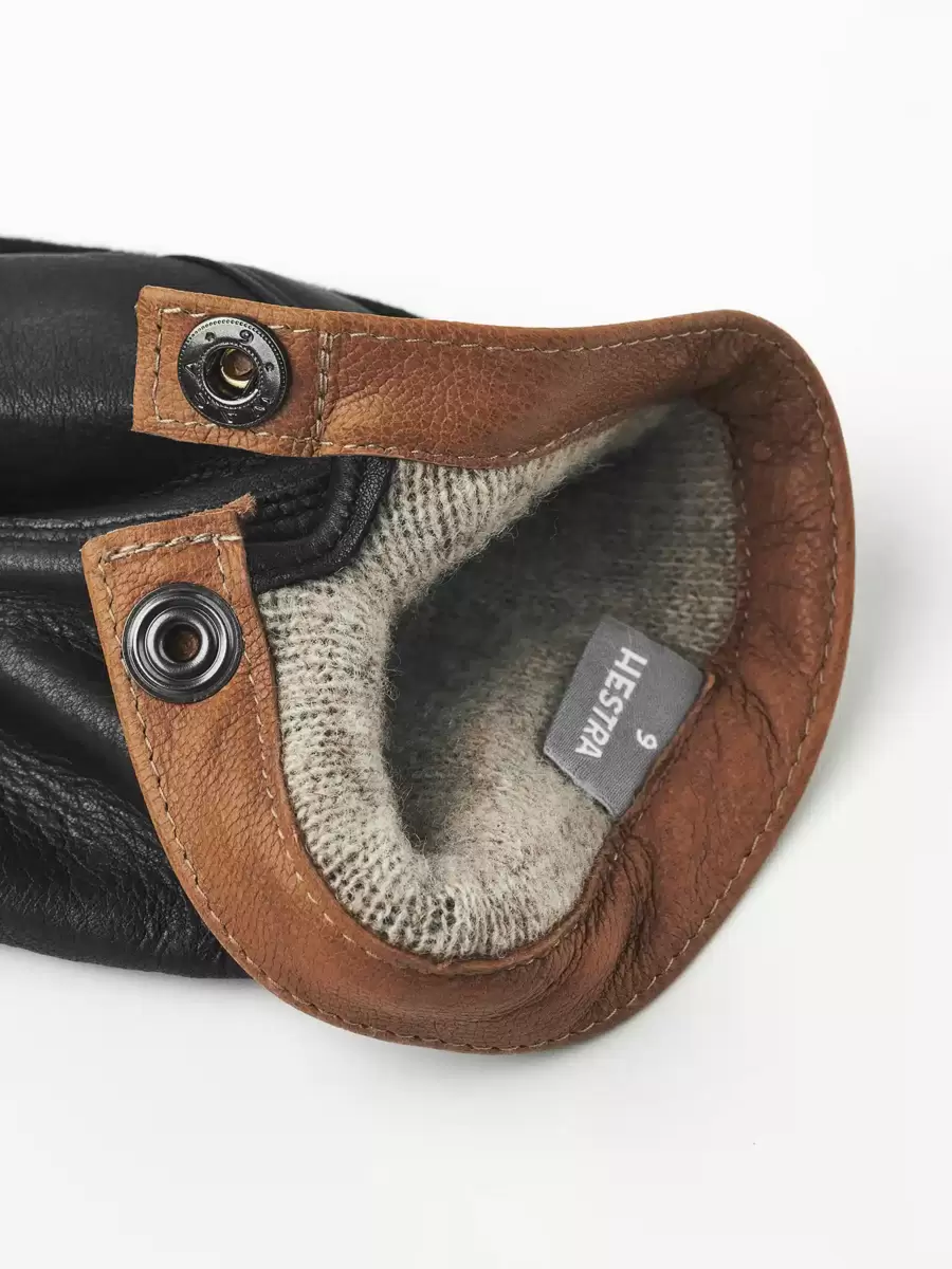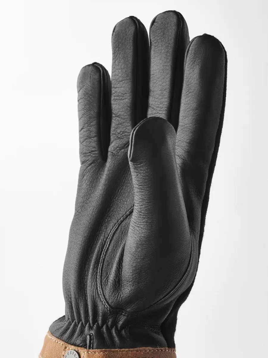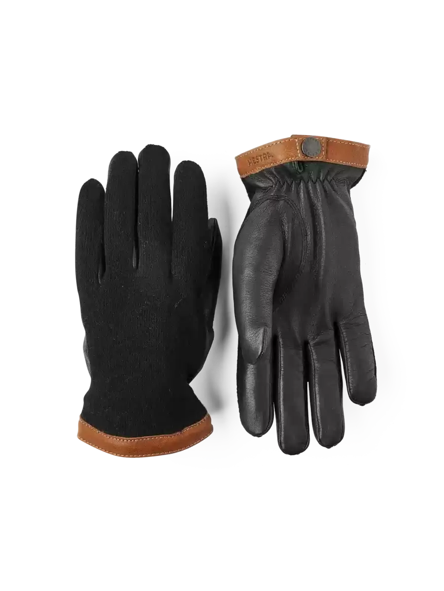 Naturmaterialer sætter tonen i denne stilfulde, minimalistiske herrehandske. Håndfladen er i smidigt hjorteskind, et smukt, varmt læder, der skaber en flot kontrast til uldjerseyen på bagsiden af hånden. Ellers er designet minimalistisk med en kant af vegetabilsk garvet gedeskind omkring manchetten. En elastisk søm på indersiden af håndleddet giver en fremragende pasform, og der er også en trykknap på indersiden af håndleddet. Et tyndt, strikket merinouldfor er blødt og varmt. Smukke materialer og gennemtænkte detaljer skaber et tidløst tilbehør, der kan bæres til arbejde eller fritid, og som er lige så hjemmevant i bymæssige som landlige sammenhænge.