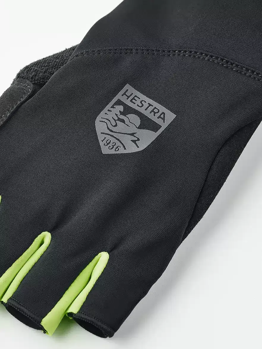 Apex Short er en tynd og fleksibel halvfingercykelhandske til varme sommerdage på både hovedveje og stier. Bagsiden er af smidig lycra, mens håndfladen er af syntetisk ruskind med tynde, polstrede sektioner for et behageligt greb om styret. En absorberende næseklud er praktisk til svedige cykelture, og den strækbare polyamidmanchet omslutter blidt håndleddet. Fås også med fingre i fuld længde.