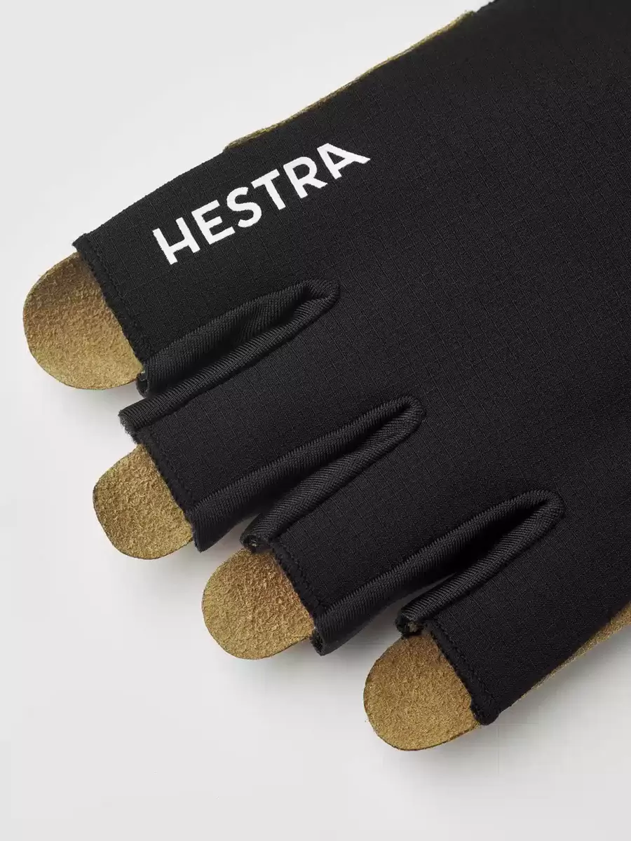 En kort, åndbar cykelhandske med halve fingre til landeveje og XC i varme forhold. En stødabsorberende gelindlæg modvirker træthed og følelsesløshed, mens et silikonetryk giver optimalt greb. Baghånden i slidstærkt stretchstof giver god luftcirkulation, mens håndfladen er syet i kraftigt syntetisk ruskind. En alsidig handske til perfekt flow på snoede veje og stier.