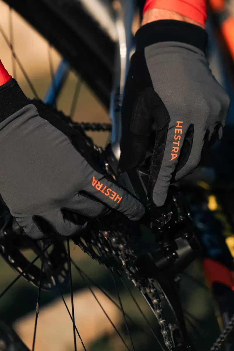 En åndbar cykelhandske til landeveje og XC i varme forhold. Stødabsorberende gel modvirker følelsesløshed, når cyklingen bliver teknisk, og et silikoneprint giver optimalt greb. Baghånden i slidstærkt stretchstof giver god luftcirkulation, mens håndfladen er i kraftigt syntetisk ruskind med en touch-funktion på pegefinger og tommelfinger. En alsidig handske til perfekt flow på snoede veje og stier.
