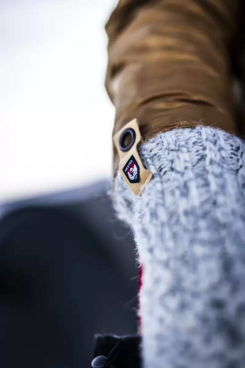 En klassisk, strikket vante i robust, filtet uld. En robust vinterfavorit, der giver mere isolering og er mere slidstærk end almindelige strikkede vanter. Perfekt som for til en skalhandske på vinterture og ekspeditioner, da uld transporterer fugt væk og isolerer, selv når den er fugtig. En karabinhage og et snørehul gør det muligt at fastgøre handsken til en rygsæk eller hænge den op til tørre derhjemme.