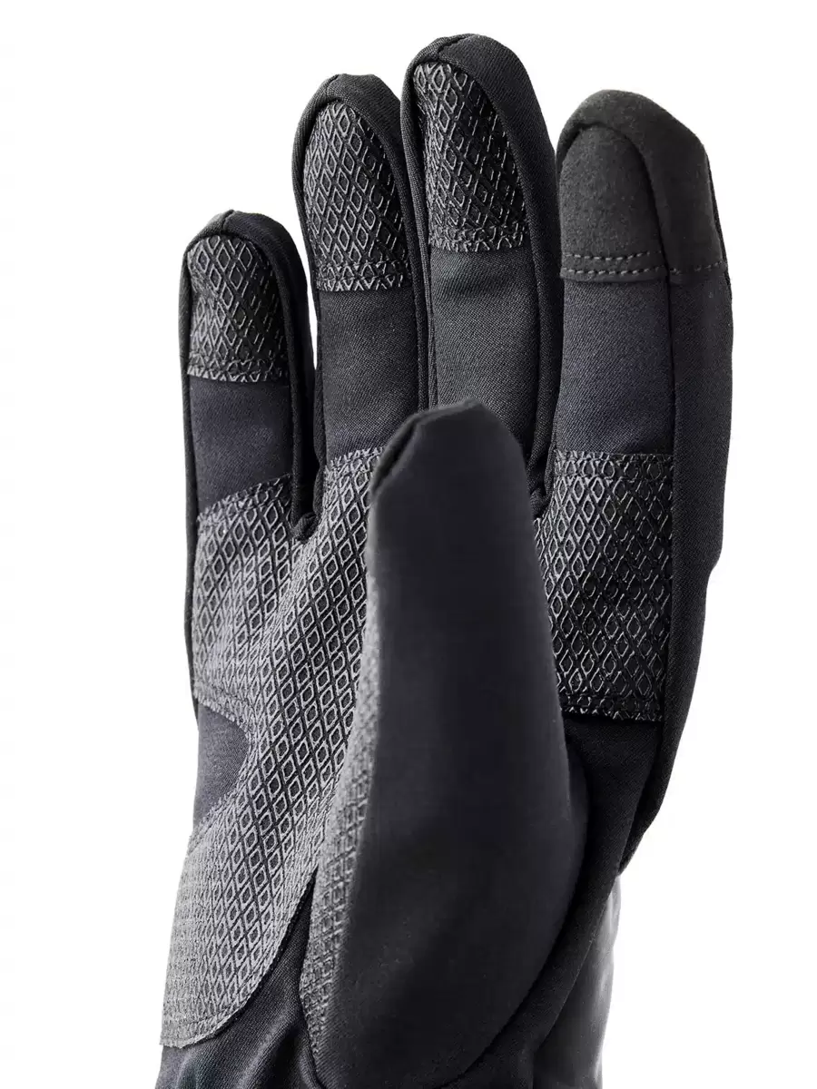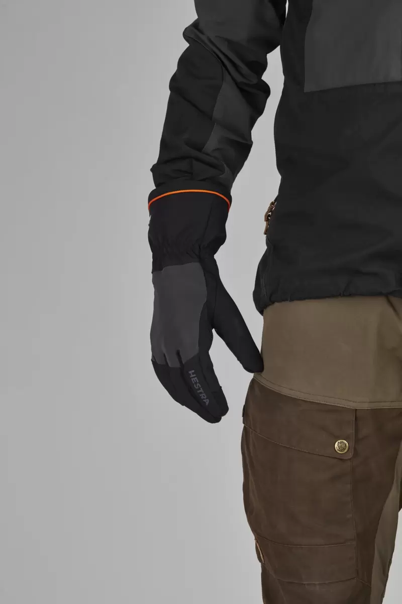 En vind- og vandtæt handske til vandreture, jagt, fiskeri og mange andre udendørsaktiviteter i vådt og køligt vejr. En CZone-membran forhindrer vand i at trænge ind, samtidig med at fugt kan slippe ud. Bagsiden er syet i fleksibelt softshell-stof med slidstærkt syntetisk ruskind i håndfladen og touchscreen-kompatibelt materiale på tommel- og pegefinger. En tynd microfleece-foring transporterer fugt væk og giver komfort omkring hånden. Perfekt, når du har brug for præcision og et godt greb, når du arbejder med dine hænder.