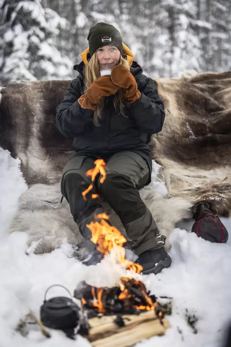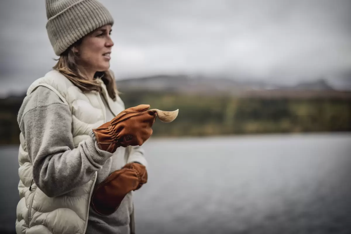 Oden Vanten er en varmende vanteversion af en klassisk friluftshandske, syet i slidstærkt nubuck-kohud. Den har et separat strikket uld/polyamidfor, der varmer og transporterer fugt væk, og som nemt kan tages ud til tørring eller vask. Du kan også udskifte med et hvilket som helst af Hestras andre aftagelige for. Udvendige sømme giver komfort og en tydelig stilfølelse, syet i brandhæmmende tråd, der ikke smelter omkring et bål. En trækflig på manchetten gør handsken nemmere at tage på, og en snøre gør det muligt at fastgøre den til en bæltestrop eller rygsæk. En komfortabel og attraktiv ledsager på efterårs- og vinterpicnic- eller grillture med en tidløs stil, der også fungerer til hverdagsbrug.
