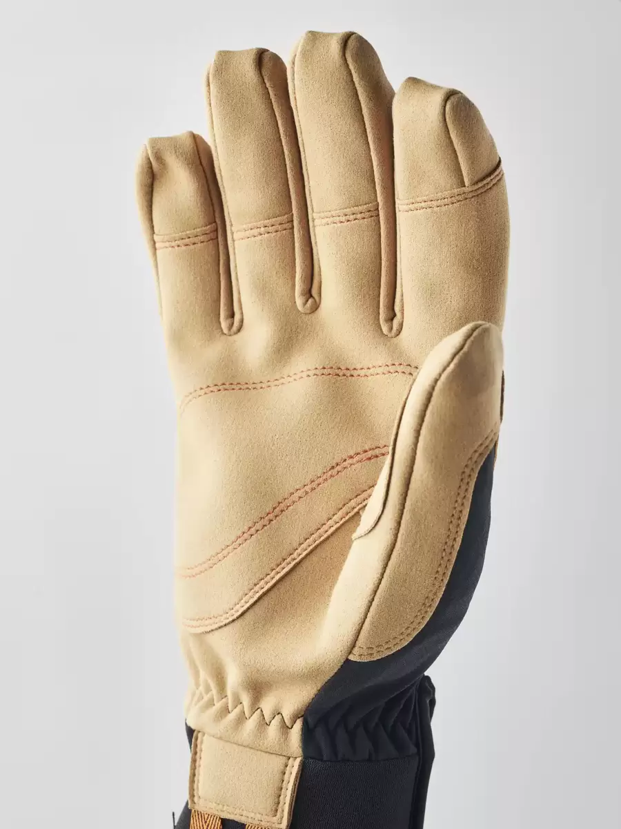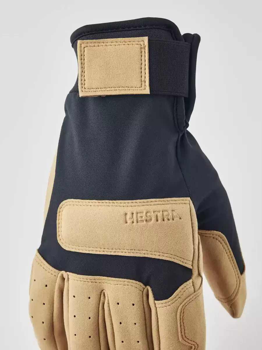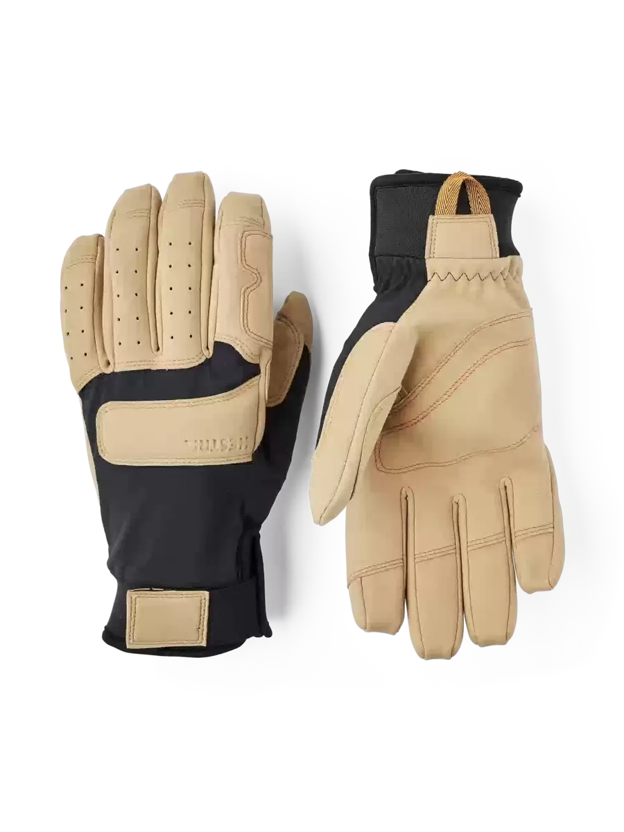 Baghånden er lavet af fleksibelt, vejrbestandigt polyamidstof, der transporterer fugt væk. Perforerede ventilationshuller omkring fingrene. Neoprenmanchetten justeres med velcro, og et stort øje giver dig mulighed for at fastgøre handsken til f.eks. klatreselen. Fås også i en halvfingerversion.
