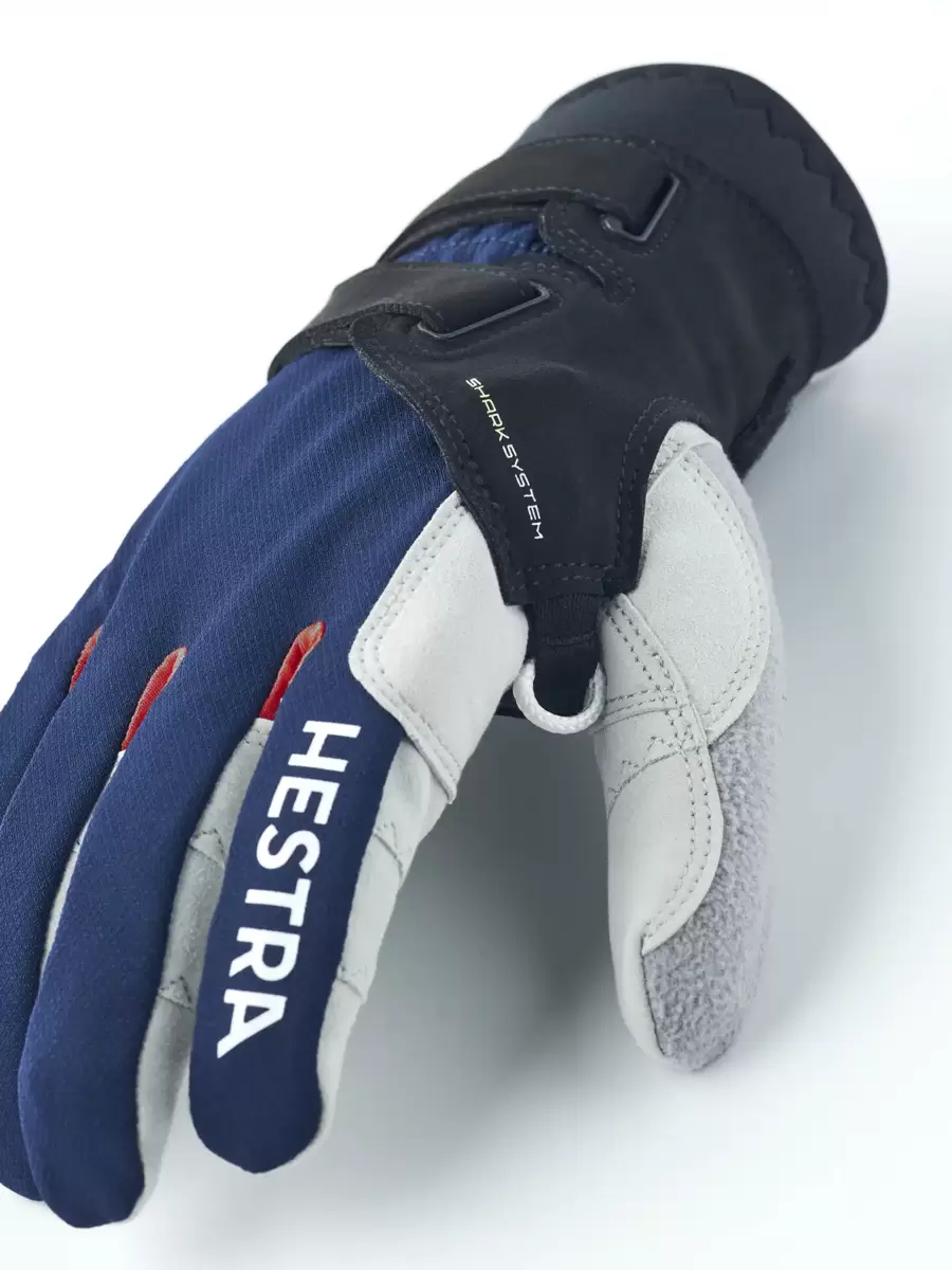 Handsken har Ergo Grip-design, hvor sømmene overlapper hinanden og er placeret for optimalt greb og bevægelsesfrihed. Baghånden er lavet af vindtæt, ventilerende stretchstof, mens håndfladen er i stretchpolyester. En neoprenmanchet omslutter håndleddet, og LEKI Trigger Shark-fastgørelsen justeres nemt med velcro for stabilitet og komfort under skiløb.