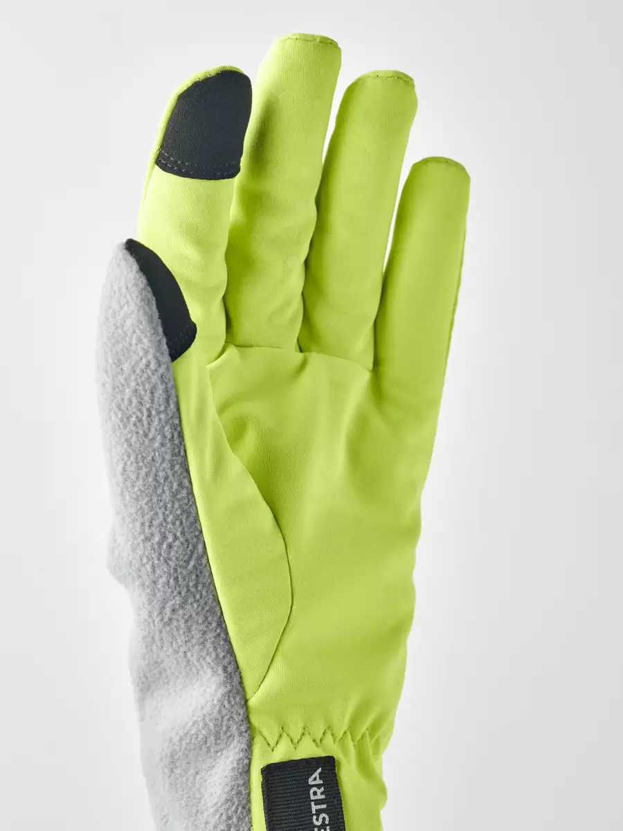 Handsken har et grebvenligt print på håndfladen og et reflekterende print i logoet på bagsiden af hånden. Touchscreen-venligt materiale på tommel- og pegefingeren giver dig mulighed for at bruge en telefon uden at tage handskerne af. Strækstoffet på tommelfingeren er vendt med fleecesiden udad for at fungere som en næseklud, når du begynder at svede. Perfekt til langrendsløb, når det er lidt køligt.
