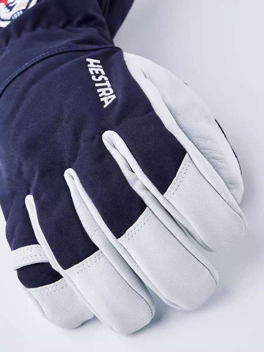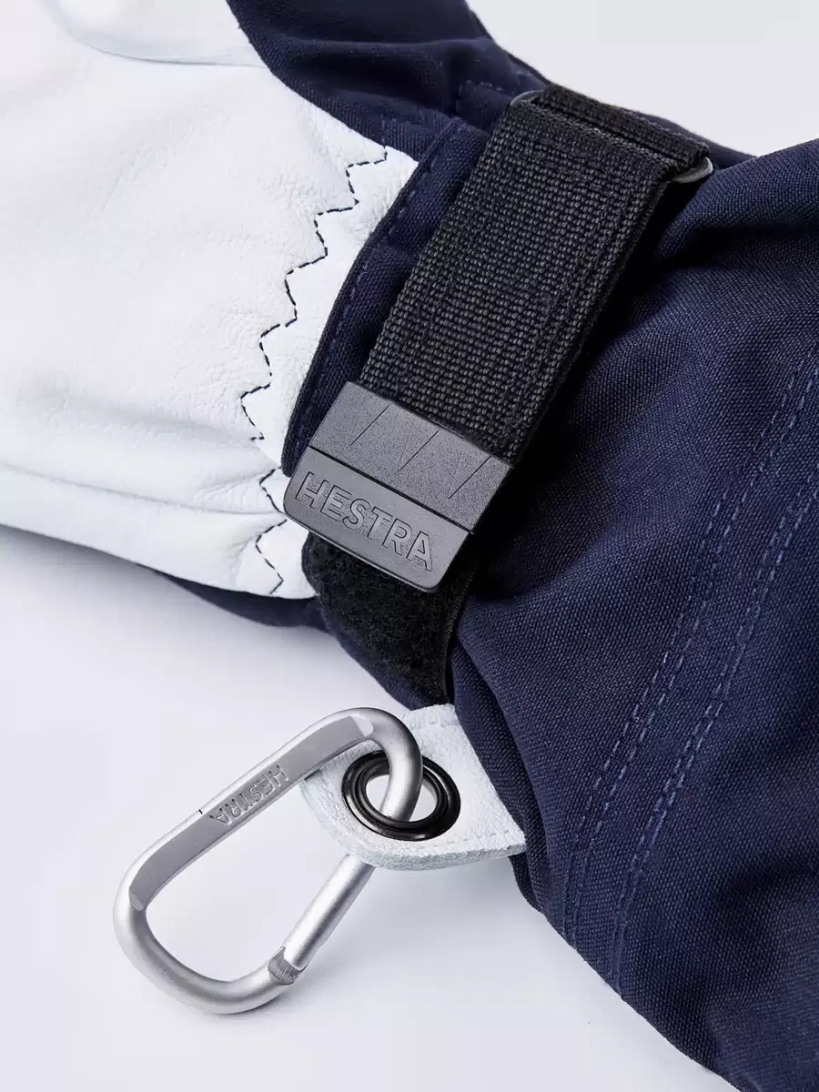 Hestras Army Leather Heli Ski blev oprindeligt skabt til skipiders i det vestlige Canada, der havde brug for en pålidelig og varm skihandske til lange dage med sne og kulde. Lavet af slidstærkt gedelæder, der giver et exceptionelt greb og en følelse, og en vandafvisende 3-lags polyamidstofbagside. Denne 5-fingre skihandske har en række smarte funktioner, der er praktiske, når du ikke kan komme i og varme dig op så ofte. Foret kan for eksempel nemt udskiftes, hvis det bliver fugtigt, eller for at tilpasse sig varierende aktivitetsniveauer og temperaturer. Og den lange krave har en snelås, der sammen med en velcrorem på håndleddet sikrer, at varmen forbliver inde i handsken. En håndledsrem reducerer risikoen for at tabe handsken, hvis du tager den af ​​for at besvare telefonen eller justere dit udstyr. En medfølgende karabinhage og et øje på lillefingeren gør det muligt at hænge handsken med åbningen nedad på dine skibukser eller klatresele – praktisk for at undgå, at den bliver fyldt med sne, mens du arbejder med kun et tyndere for på hænderne. En slidstærk og fleksibel ledsager til skiløbere, der bruger meget tid udendørs og ofte befinder sig langt fra skisportsstedet og dets komfort. Fås også som vante og 3-finger model.