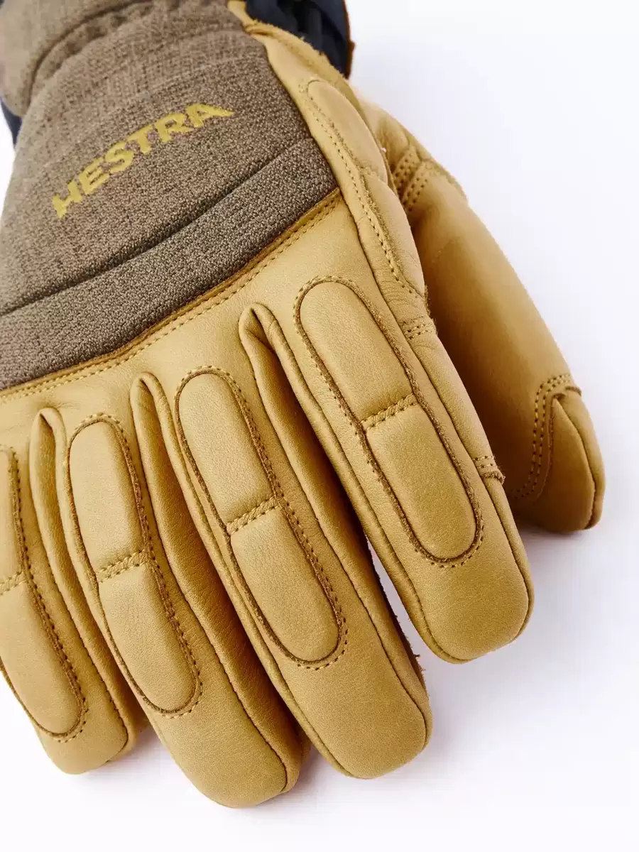 Army Leather Patrol er en varm, slidstærk 5-fingre skihandske med smarte funktioner. Den bygger på det samme robuste koncept som Hestras Heli Ski-model, men er designet til at blive båret under jakkens ærme med en behagelig neoprenkrave, der omslutter håndleddet. Fingre og håndflade er lavet af imprægneret gedelæder med ydersømme, der giver komfort og et følsomt greb, mens bagsiden er lavet af fleksibelt og vejrbestandigt softshell-stof. Et fleecefor med syntetisk isolering holder fingrene varme selv i lave temperaturer og kan nemt tages ud for vask eller tørring. Du kan også udskifte isoleringen med et tyndere for for at justere varmen, hvis du f.eks. vandrer og sveder mere. En håndledsrem reducerer risikoen for at tabe handsken, hvis du tager den af for at justere dit udstyr. En karabinhage medfølger også sammen med en øje og en ophængningsløkke, hvilket giver flere fastgørelsesmuligheder. En slidstærk og pålidelig ledsager for dem, der tilbringer lange dage udendørs i sne og kulde, og som foretrækker at komme væk fra skisportsstedet og dets komfort. Fås også i modeller med vanter og 3 fingre, samt en damemodel.