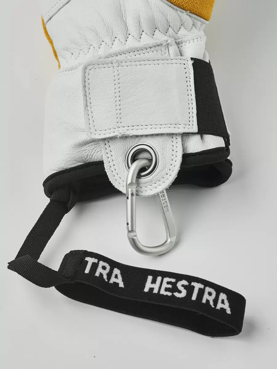 Army Leather Patrol er en varm 3-fingret skihandske med smarte funktioner. Den bygger på det samme robuste koncept som Hestras Heli Ski-model, men er designet til at blive båret inden i et jakkeærme med en behagelig neoprenkrave, der omslutter håndleddet. 3-fingret-modellen er til dem, der leder efter en varmere handske, der stadig bevarer fingerfærdigheden. Fingre og håndflade er lavet af imprægneret gedelæder, mens baghånden er lavet af fleksibelt og vejrbestandigt softshell-stof. Et fleecefor med syntetisk isolering holder fingrene varme selv ved lave temperaturer og kan nemt tages ud for vask eller tørring. Du kan også udskifte isoleringen med et tyndere for for at justere varmen, hvis du f.eks. vandrer og sveder mere. En håndledsrem reducerer risikoen for at tabe handsken, hvis du f.eks. har taget den af ​​for at justere dit udstyr. En karabinhage medfølger også sammen med en øje og en ophængningsløkke, hvilket giver flere fastgørelsesmuligheder. En slidstærk og pålidelig ledsager for dem, der tilbringer lange dage udendørs i sne og kulde, og som foretrækker at komme væk fra skisportsstedet og dets komfort. Fås også som vante- og 5-finger-modeller, samt en damemodel.
