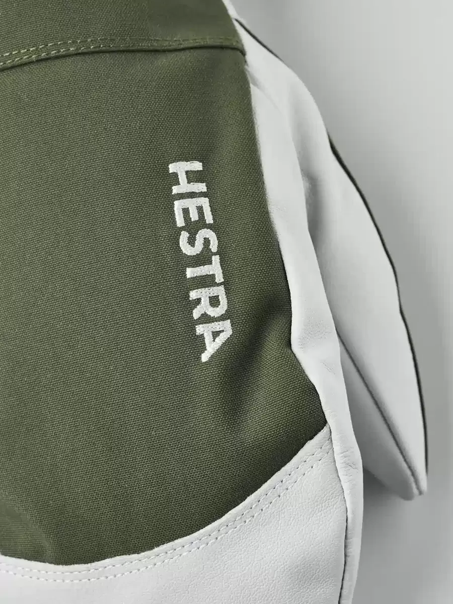 Hestras Army Leather Heli Ski blev oprindeligt skabt til skipiders i det vestlige Canada, der havde brug for en pålidelig og varm skihandske til lange dage med sne og kulde. Lavet med slidstærkt gedelæder, der giver et exceptionelt greb og følelse, og med en vandafvisende trelags polyamidstofbagside. Denne model er til dem, der leder efter en varmere vante, og ligesom en handske tilbyder den en række smarte funktioner, der gør det nemmere, når du ikke kan gå indenfor for at varme dig op ofte. Foret er for eksempel nemt at tage ud og udskifte, hvis det bliver fugtigt, eller for at tilpasse sig varierende aktivitetsniveauer og temperaturer. Og den lange krave har en snelås, der sammen med en velcrorem på håndleddet sikrer, at varmen forbliver inde i handsken. En håndledsrem reducerer risikoen for at tabe handsken, hvis du tager den af ​​for at besvare telefonen eller justere dit udstyr. Der er også et øje, der lader dig fastgøre handsken med en karabinhage til dine skibukser eller klatresele – praktisk, når du arbejder med kun et par tynde foringer på hænderne. En slidstærk og fleksibel ledsager til skiløbere, der bruger meget tid udendørs og ofte befinder sig langt fra skisportsstedet og dets komfort. Fås også i 3- og 5-fingermodeller.