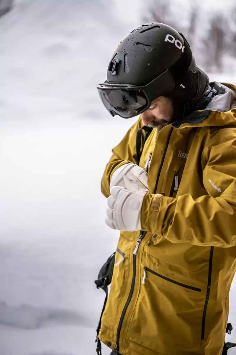 Fall Line 5 Finger er en varm skihandske til freeriding og snowboarding. Denne kortere model har en neoprenmanchet, der sidder glat under skaljakkens ærme. Lavet af imprægneret kohud med ydersømme, der giver komfort og et tættere greb om staven. Den inkluderer et aftageligt syntetisk for, der er let at tørre og vaske, samt skumisolering for ekstra varme og stabilitet. Tekniske detaljer bidrager til en praktisk funktionalitet på bjerget. En håndledsrem reducerer for eksempel risikoen for at tabe en handske, når du besvarer telefonen. Og en medfølgende karabinhage giver dig mulighed for at fastgøre handskerne på din jakke eller rygsæk, når de ikke er i brug. Perfekt til dem, der foretrækker off-piste lige så meget som on-piste, og som ikke er bange for en lille vandretur. Fås også i vante-, 3-finger- og damemodeller.
