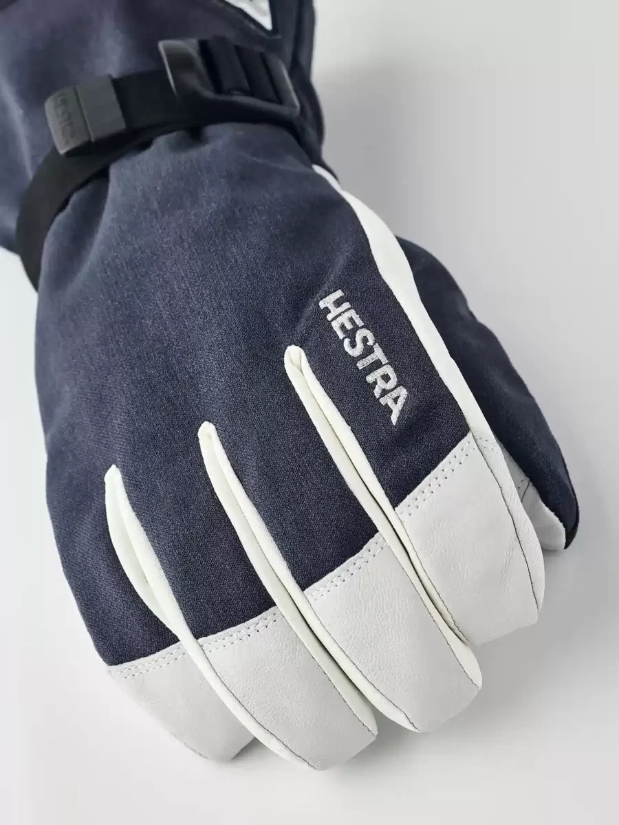 Hestras Powder Gauntlet er en varm skihandske med gennemtænkte funktioner. Den har en lang manchet med en elastisk snøre, der holder sne væk fra dine hænder og håndled. Håndledsbredden er nem at justere med én hånd. Den leveres også med et fastgørelsesstykke til Hestra håndjern (håndledsrem). Foret er aftageligt og nemt at tage ud og tørre efter en dag på ski. Mikrofleeceforet er behageligt mod huden, og den syntetiske isolering både isolerer og transporterer fugt væk. En alsidig, varm skihandske til lange dage på bjerget og lige så hjemme på nedkørsler som til andre vinteraktiviteter. Fås også som vante- og trefingermodel.