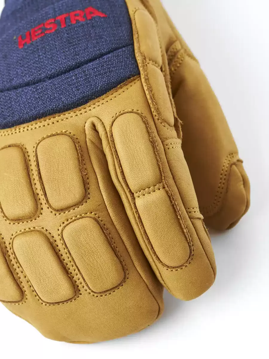 Hestras Vertical Cut CZone er en praktisk 3-finger skihandske til freeriding og snowboarding. Lavet af slidstærkt getnappa* med forstærkninger på udsatte dele. En CZone-membran beskytter mod vand og afgiver fugt, mens G-Loft syntetisk fyld isolerer gennem de lange vinterdage på bjerget. Handsken har ydersømme for bedre komfort og stavgreb. Skumpaneler på håndens overside beskytter mod fald og stød. En neoprenmanchet giver en bedre pasform og holder varmen inde i handsken, samtidig med at den glider glat ind i jakkeærmet. Andre smarte detaljer inkluderer håndledsremmen, der reducerer risikoen for, at du taber din handske, og en karabinhage til at fastgøre den til din rygsæk. 3-fingermodellen er til dem, der leder efter en varmere handske, der samtidig bevarer fingerfærdigheden. Fås også i 5-fingermodel. * farverne 280701 og 870701 er lavet af kohud.