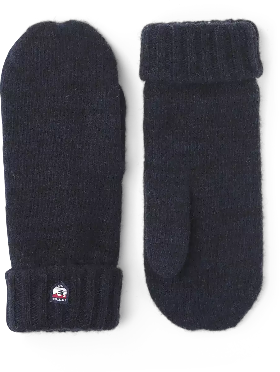 En klassisk strikket vante i fint uld/cashmeregarn. Et dejligt blødt tilbehør til kølige efterårsdage. Strikket i glatstrik med en dobbelt ribkant og et lille Hestra-logo.