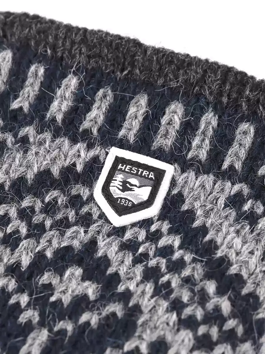 En retro-inspireret strikket vante i blød, varmende uld. Strikket i et klassisk nordisk Fair Isle-design i uldgarn blandet med lidt polyamid for ekstra styrke. Manchetten er lige og afsluttet med en dekorativ kontrastfarve. Et strikket for i en uldblanding giver ekstra varme. En smuk, varmende vante til frostede efterårs- og vinterdage.