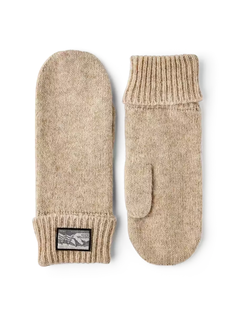 Klassisk glatstrikket vante i blødt meleret uldgarn. En alsidig, brugervenlig hverdagshandske til efterår og mildere vinterdage, og nem at putte i lommen, når den ikke er i brug. Dobbelt ribbet manchet med et vævet Hestra-logo på ydersiden af håndleddet og et tyndt strikket uld/polyamidfor, der giver ekstra varme omkring fingrene.